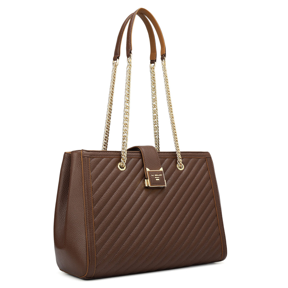 Medium Wax Stripe Leather Shoulder Bag - Espresso