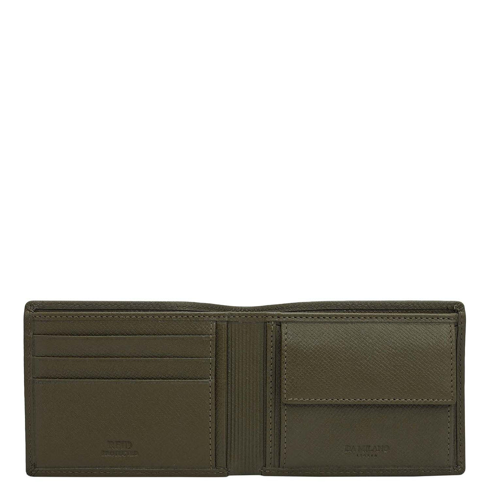 Crafted from textured leather, Da Milano men's bifold wallet offers a compact yet stylish design. Featuring easy-to-organize compartments, card slots, and pockets, it combines practicality with elegance. Subtle branding on the front enhances its refined appearance.