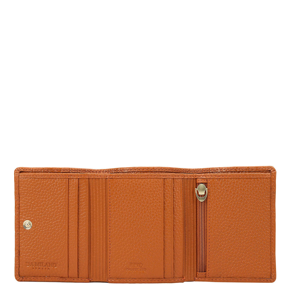 Crafted from textured leather, Da Milano men's trifold wallet offers a compact yet stylish design. Featuring easy-to-organize compartments, card slots, and pockets, it combines practicality with elegance. Subtle branding on the front enhances its refined appearance.