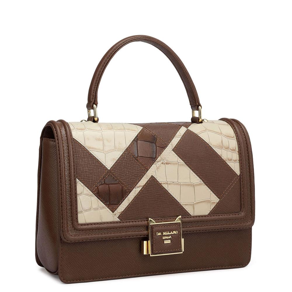 This elegant leather satchel handbag combines timeless style with practical functionality. Crafted from premium full-grain leather, it features a spacious interior with multiple compartments, and a detachable shoulder strap for versatile carrying options. Perfect for both professional and casual situations.