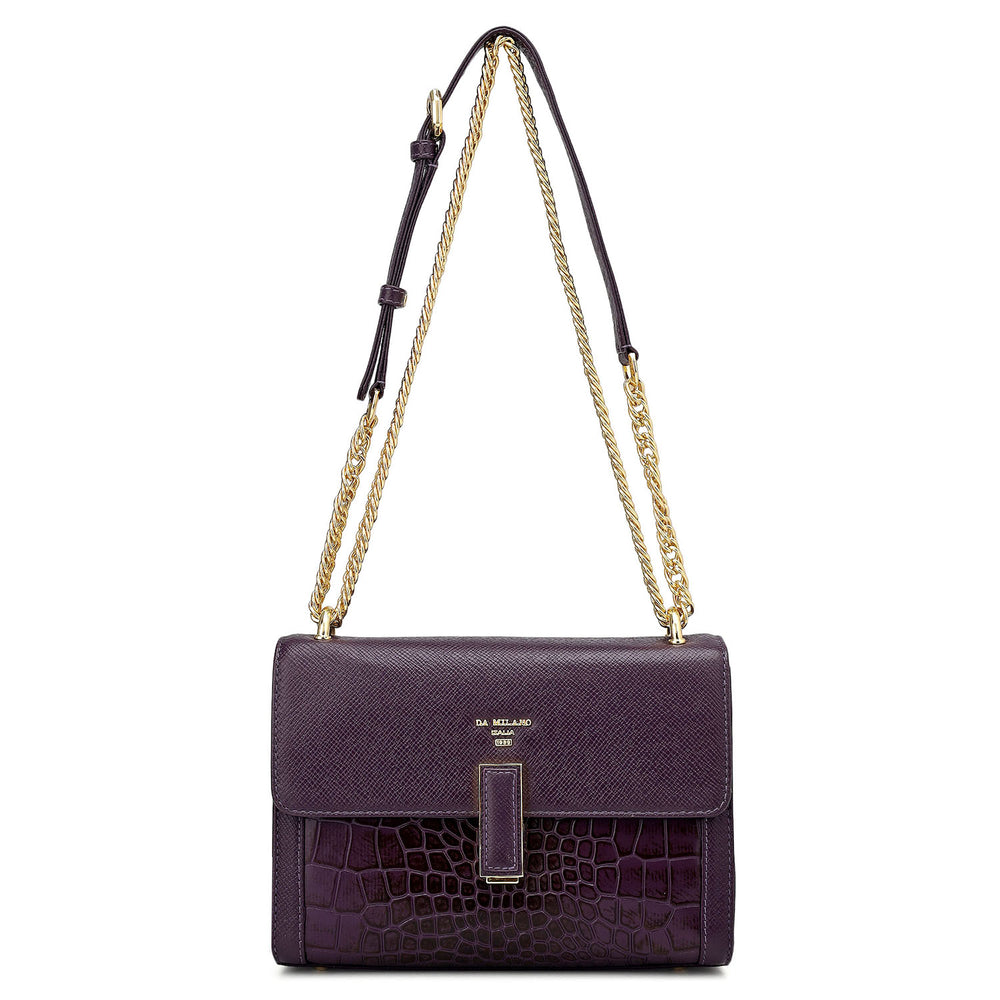 Small Franzy Croco Leather Shoulder Bag - Grapevine