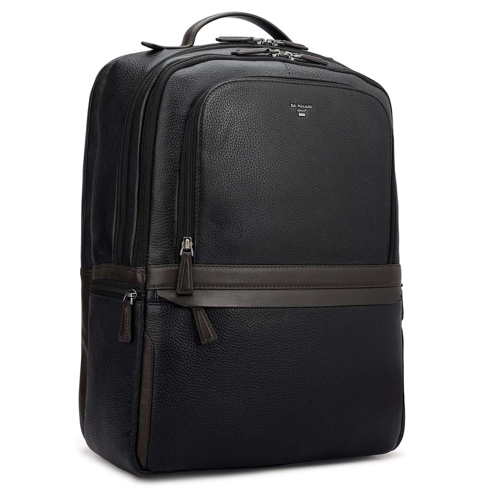Leather backpack with a play of texture. Featuring multipurpose pockets on the exterior as well as interior to enhance utility. This functional bag is the perfect fusion of Italian craftsmanship and contemporary style. Comes with a detachable shoulder strap, and the bag can fit a standard laptop up to 15 inches.