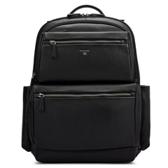 Leather backpack with a play of texture. Featuring multipurpose pockets on the exterior as well as interior to enhance utility. This functional bag is the perfect fusion of Italian craftsmanship and contemporary style. This bag can fit a standard laptop up to 16 inches.