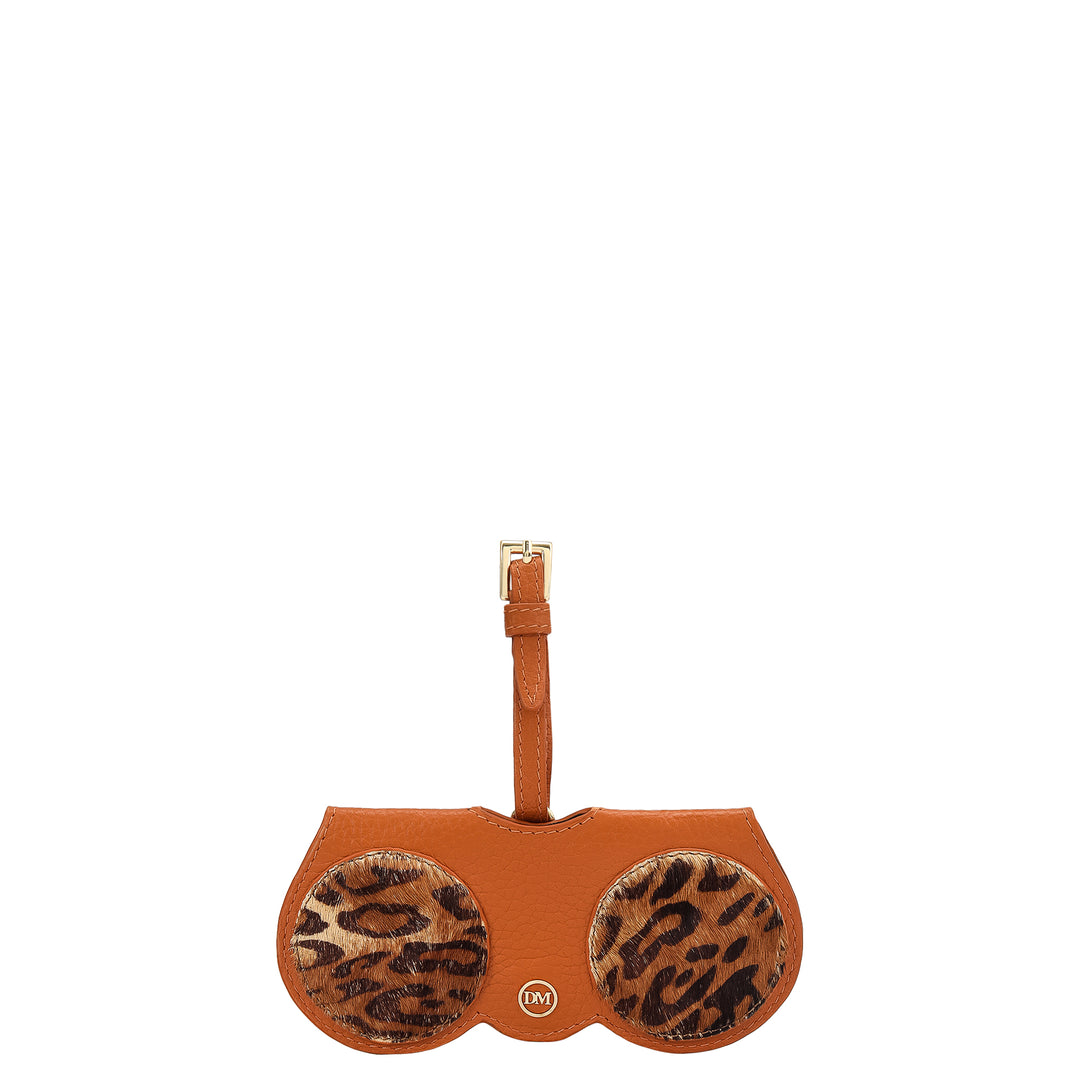 Fur Wax Leather Spectacle Case - Beige & Orange
