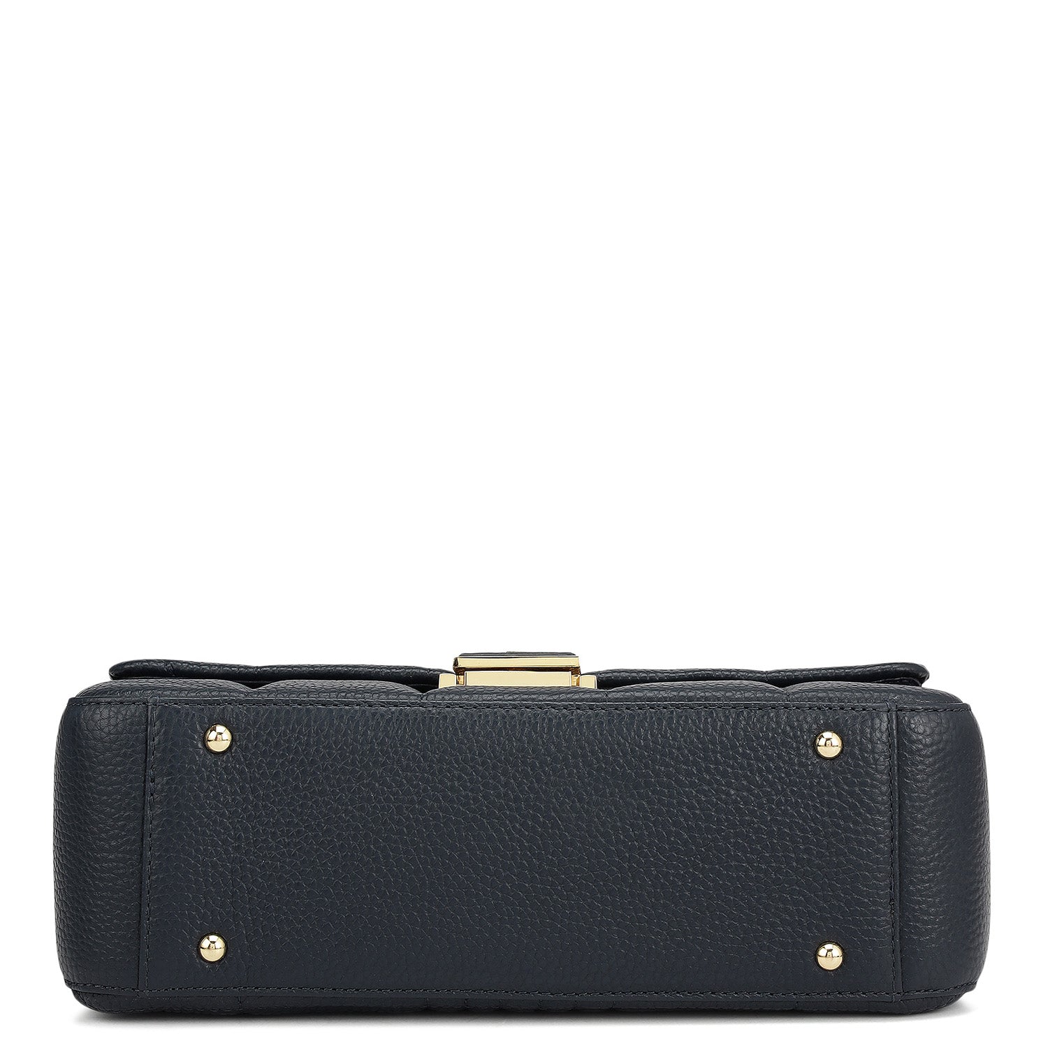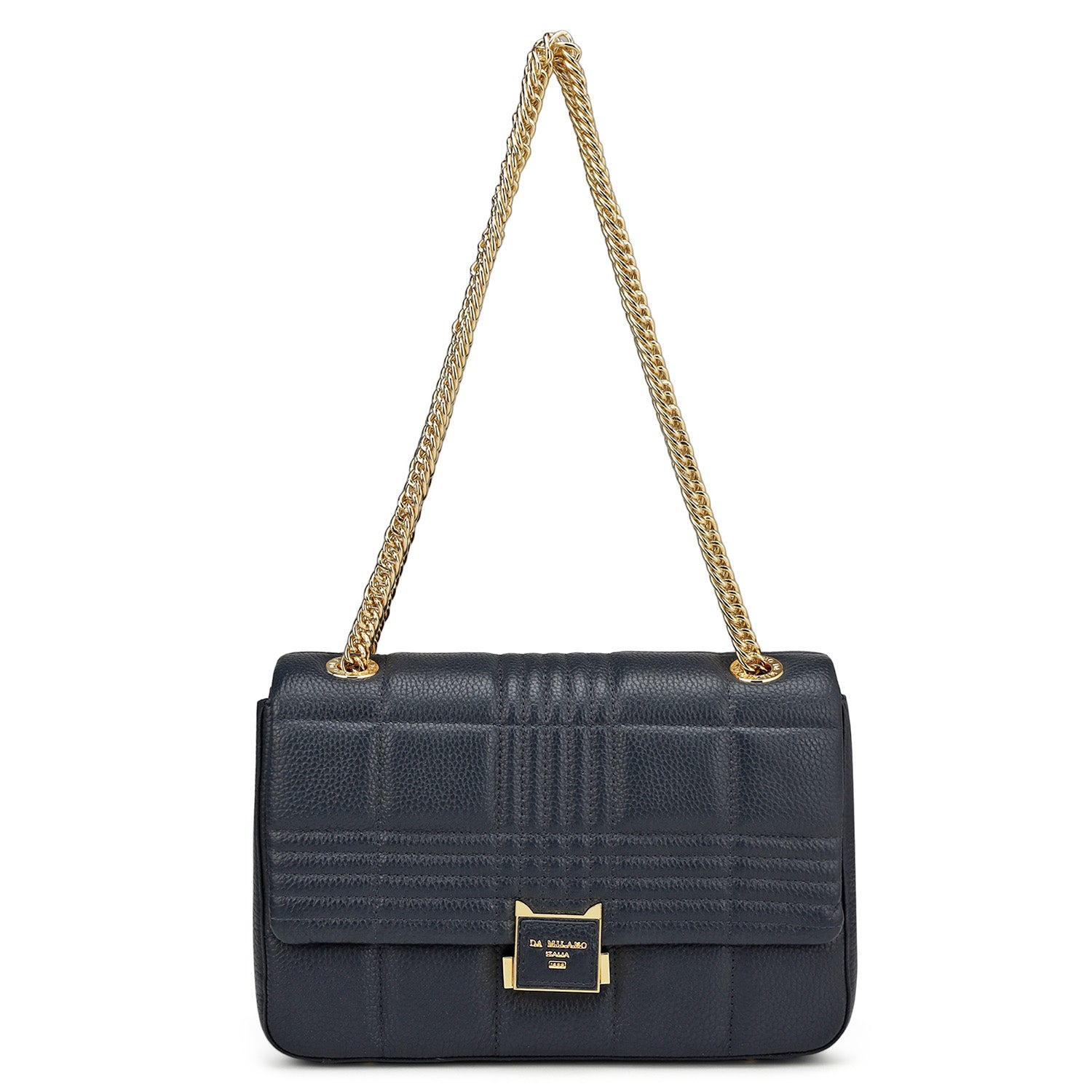 Medium Wax Stripe Leather Shoulder Bag - Navy
