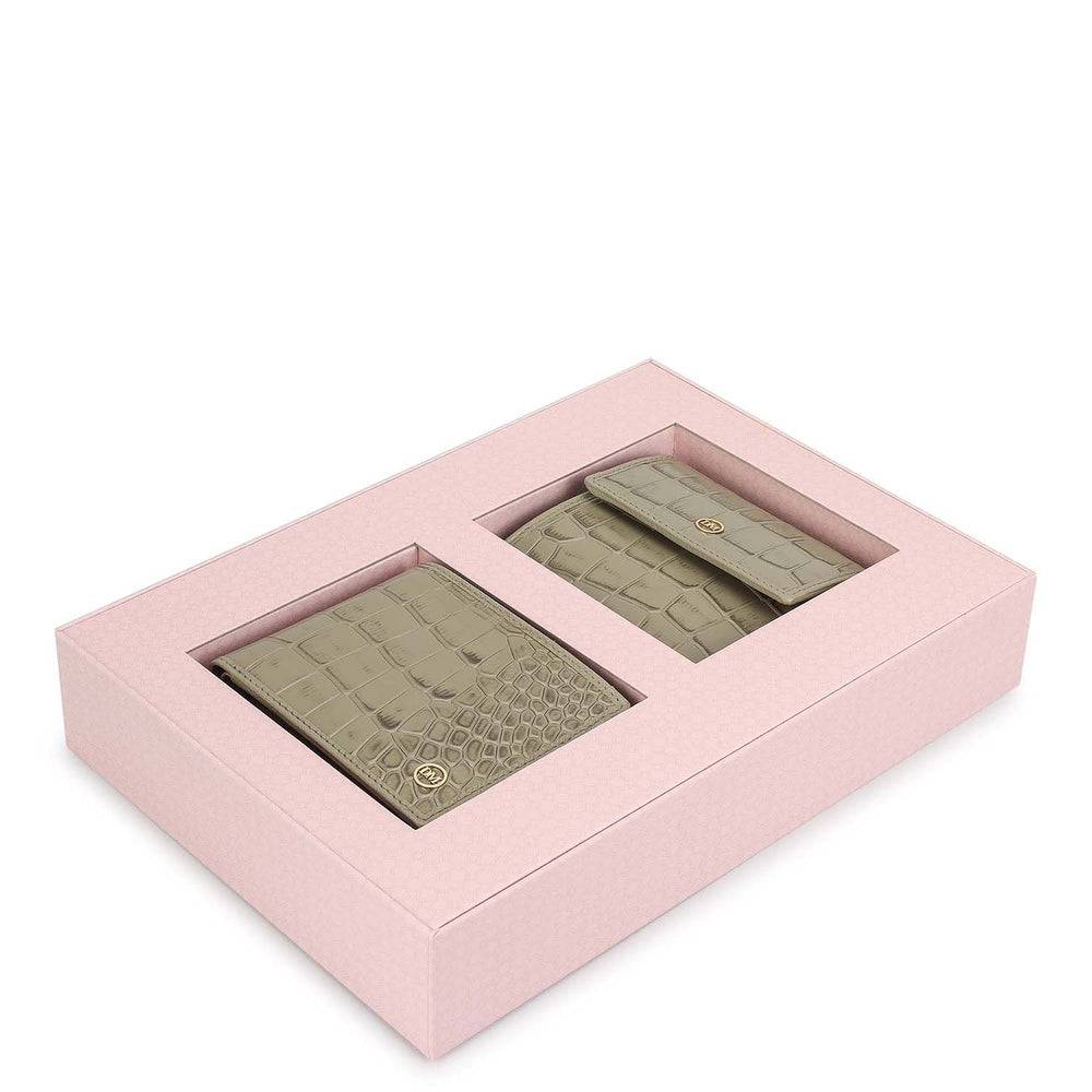Stone Grey Croco Leather Mens & Ladies Wallet Gift Set