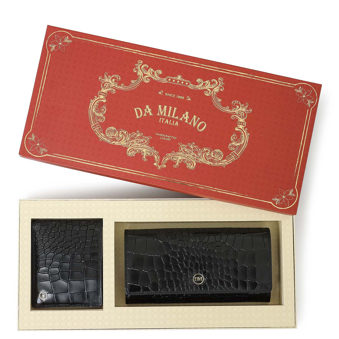 Black Croco Leather Ladies Wallet & Keychain Gift Set