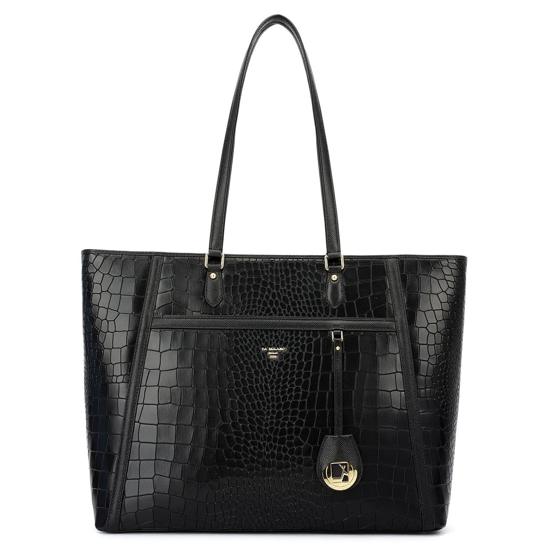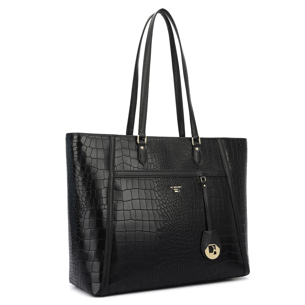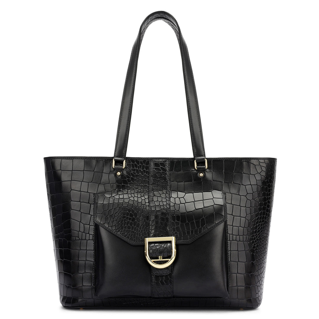 Large Croco Franzy Leather Tote - Black