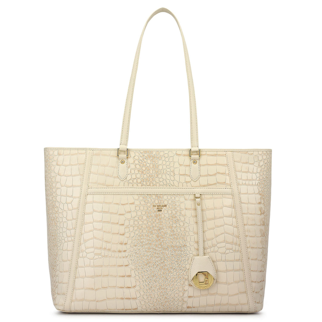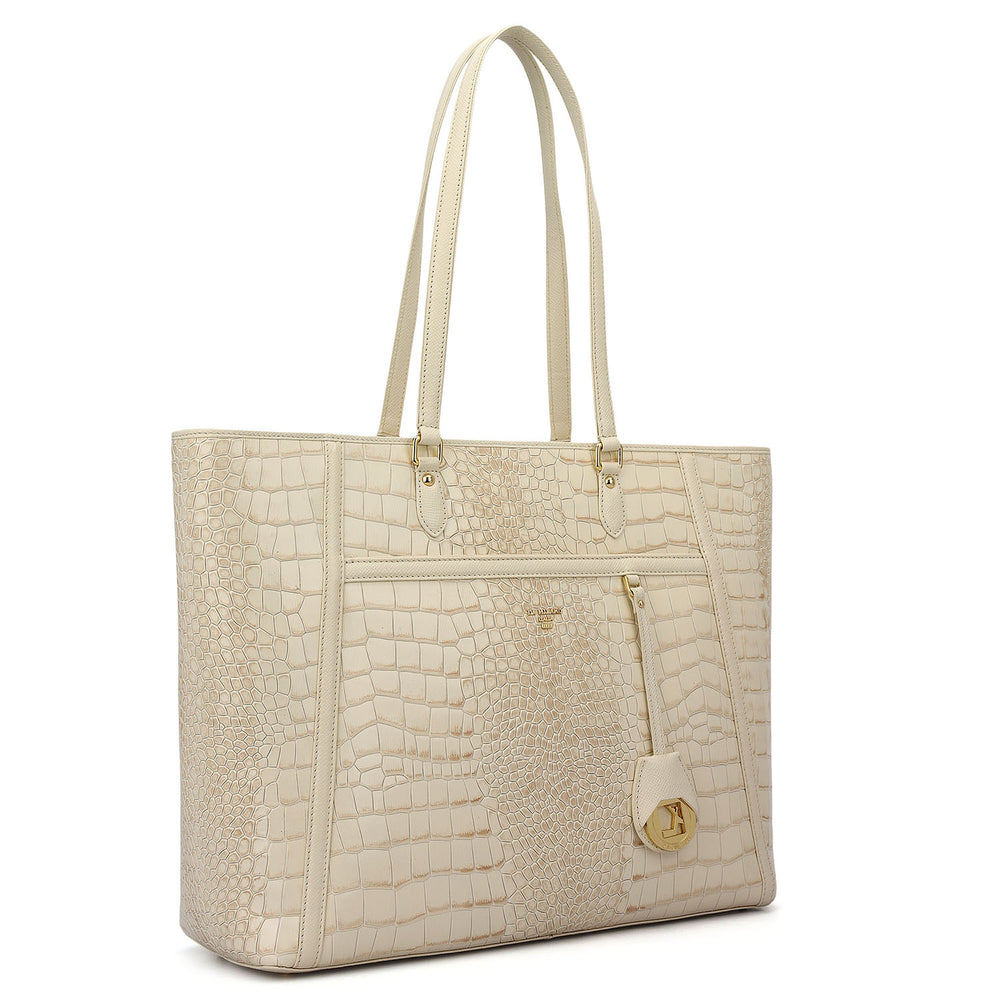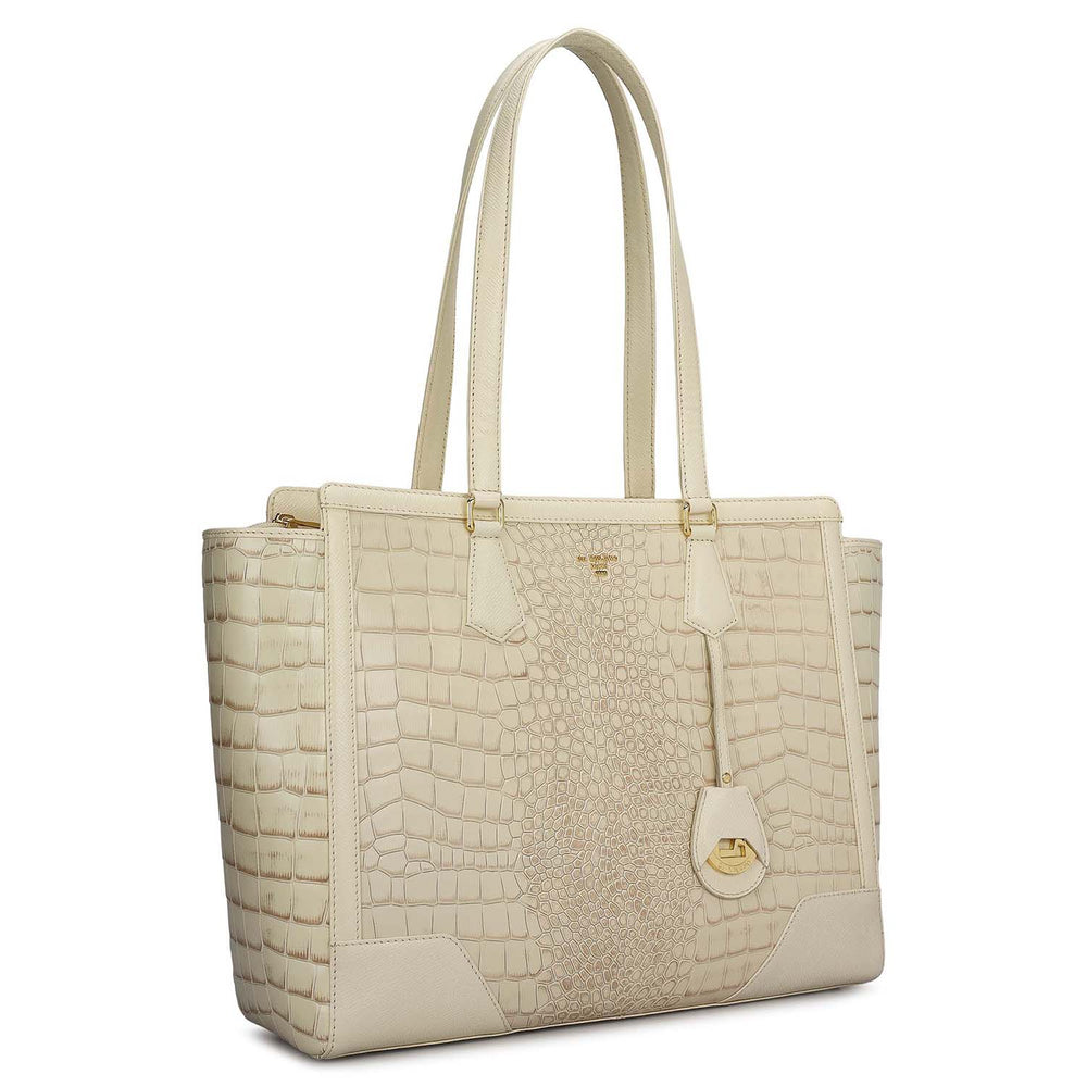 Large Croco Franzy Leather Tote - Marshmallow
