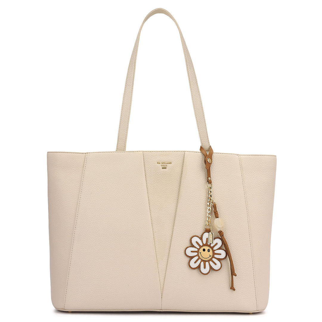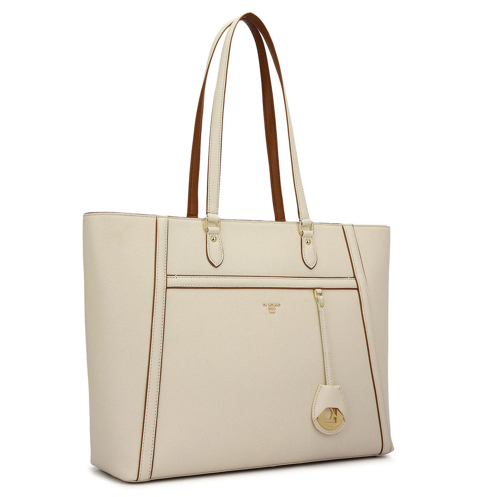 Large Canvas Wax Leather Tote - Beige & Espresso