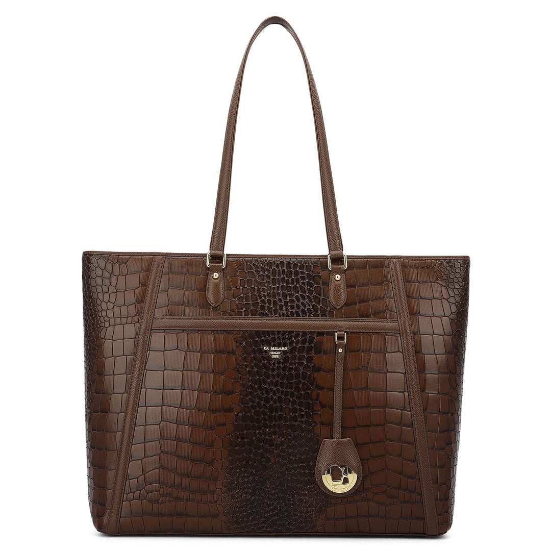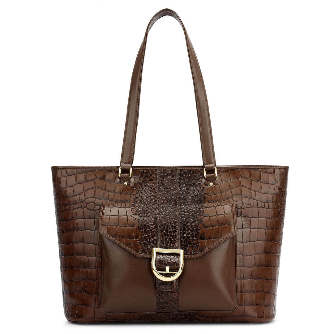 Medium Croco Leather Tote - Grapevine