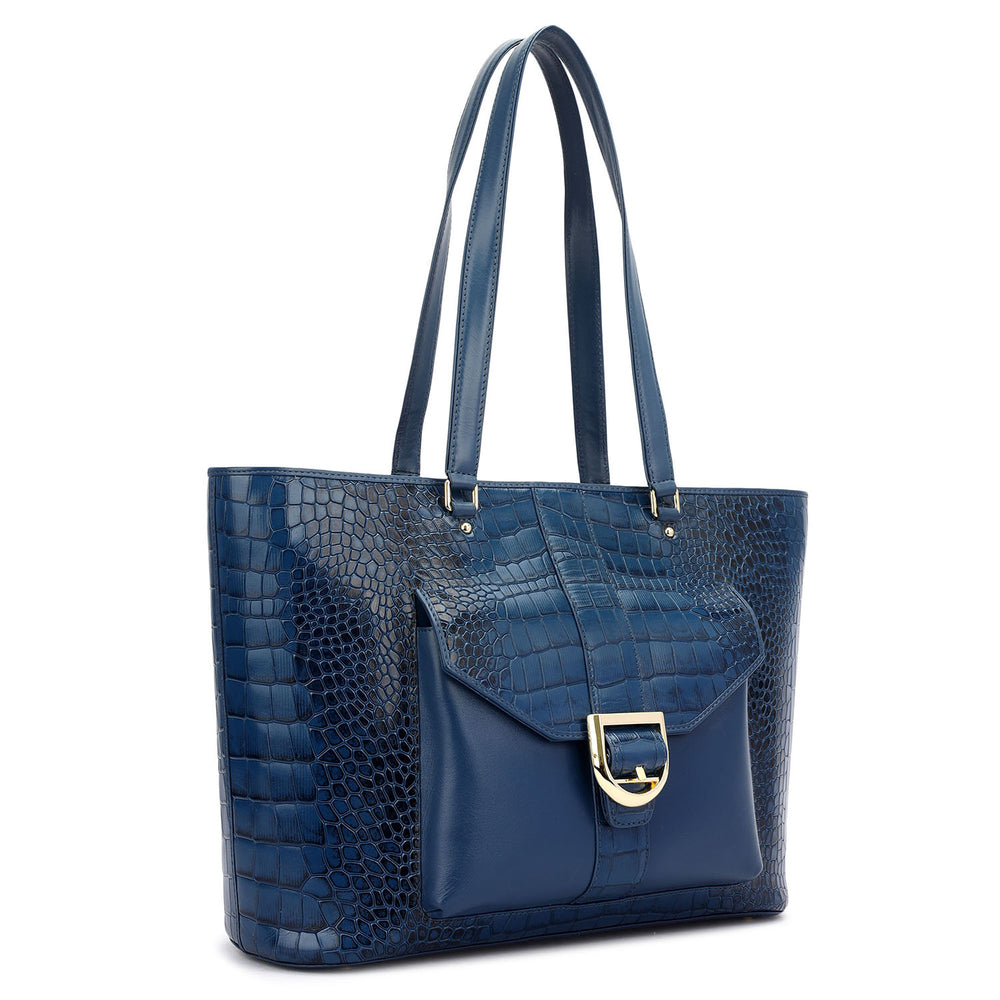 Medium Croco Leather Tote - Teal