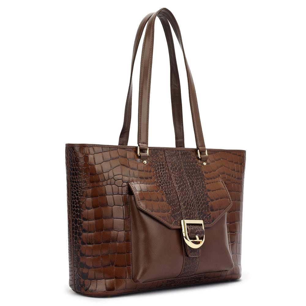 Medium Croco Leather Tote - Stardust