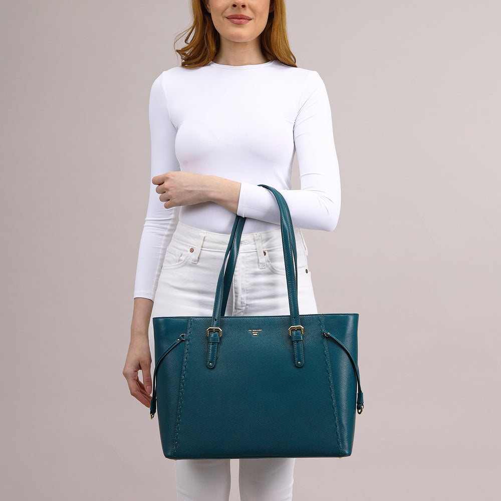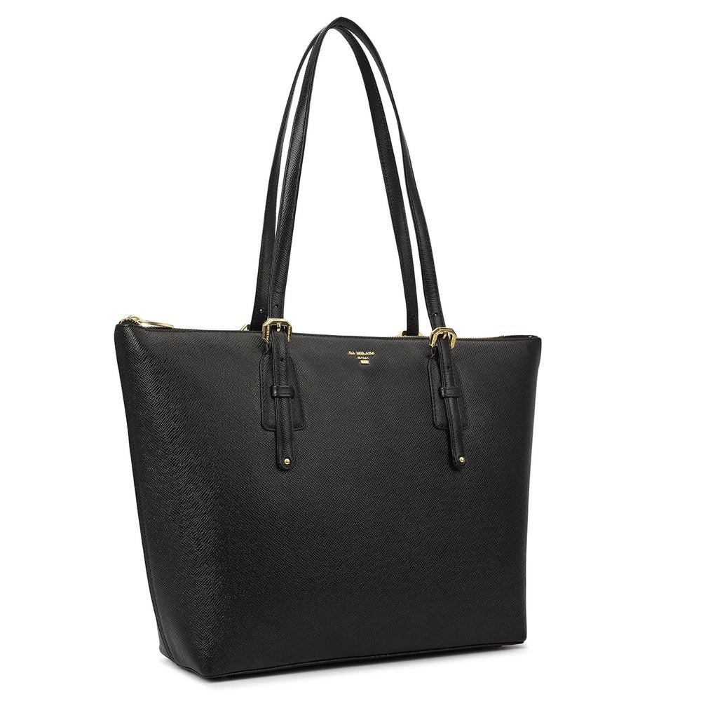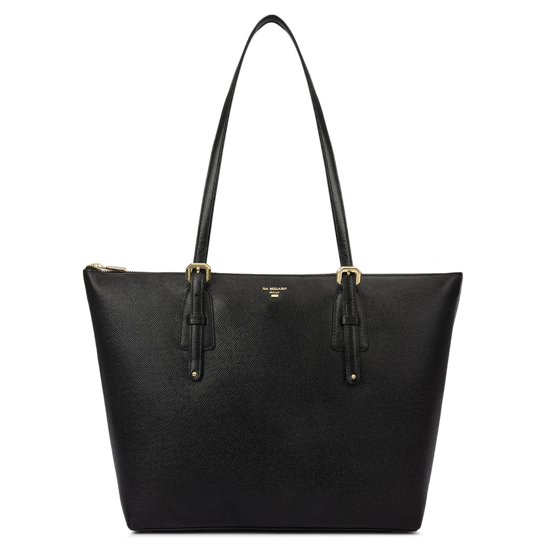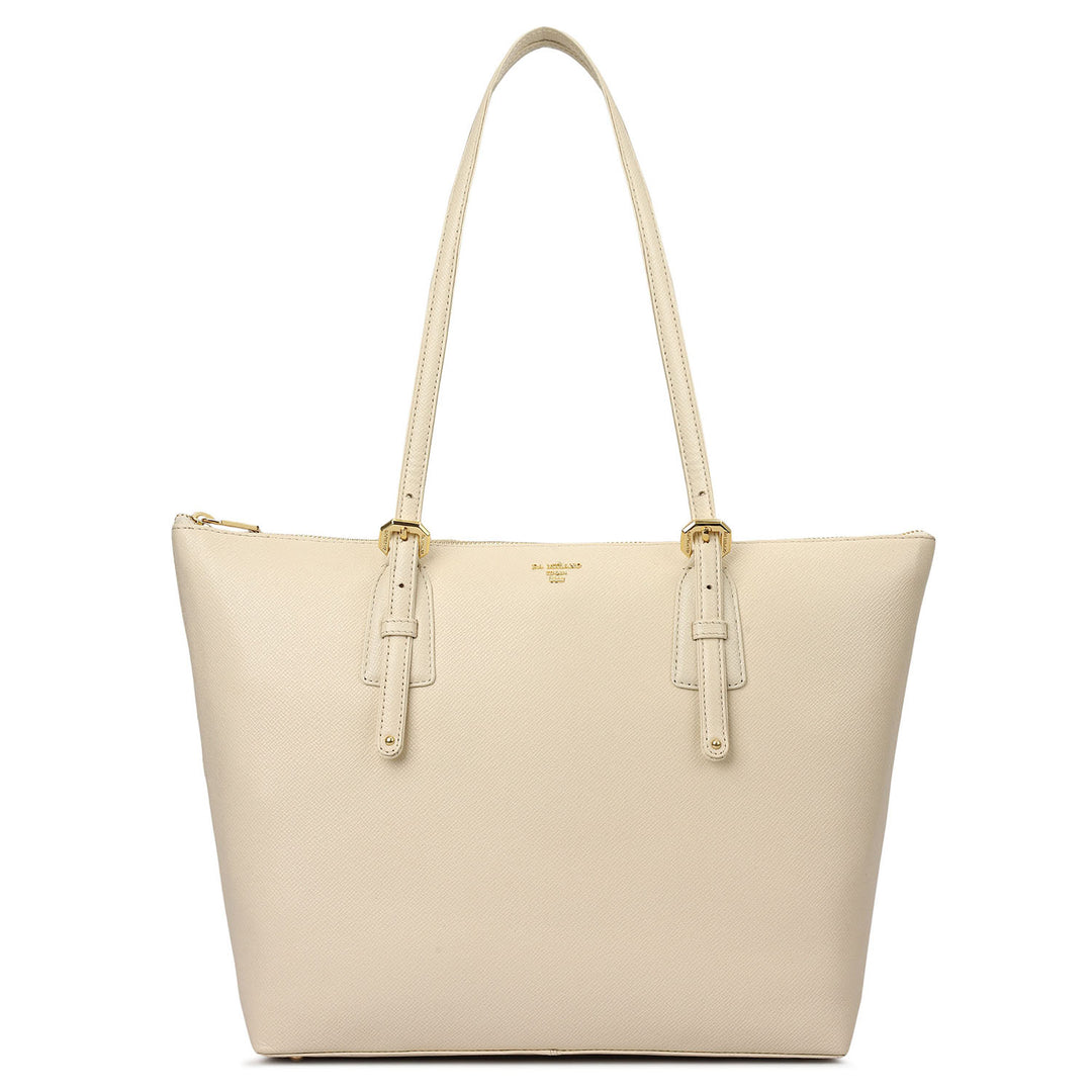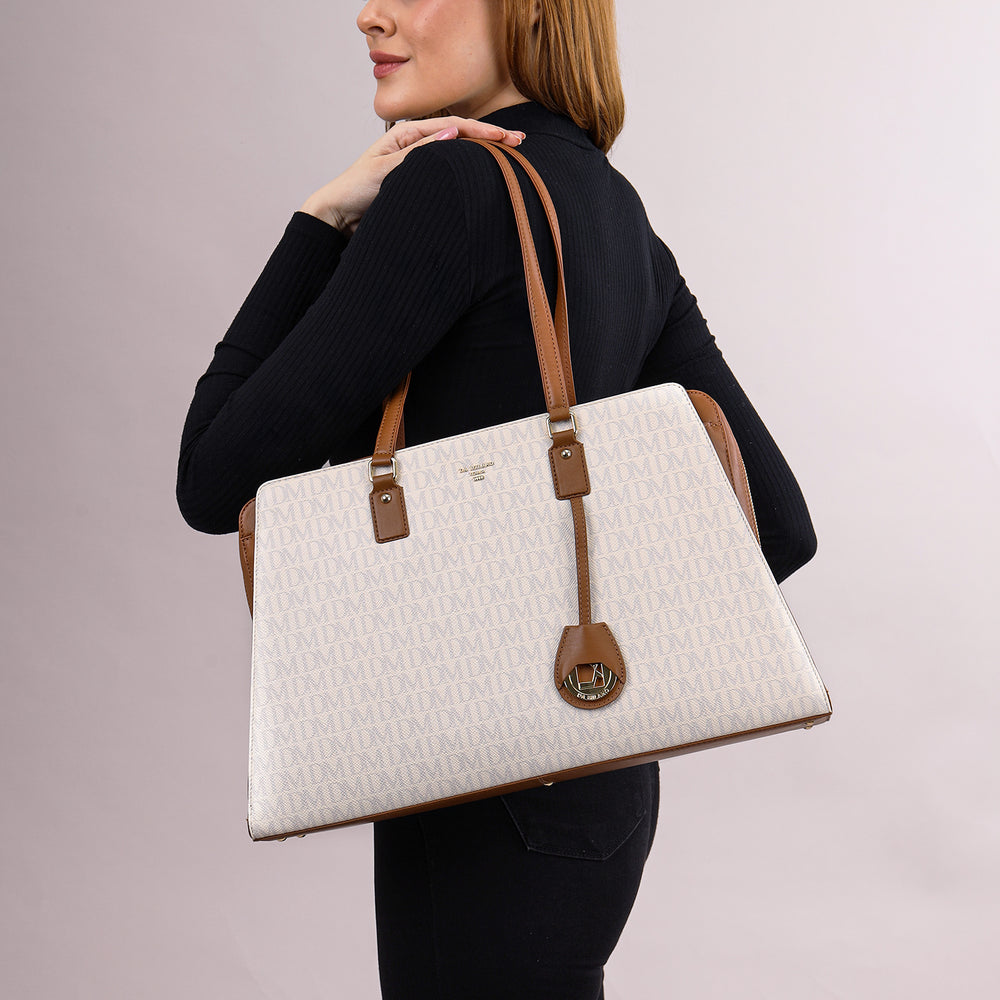 Large Canvas Wax Leather Tote - Beige & Espresso