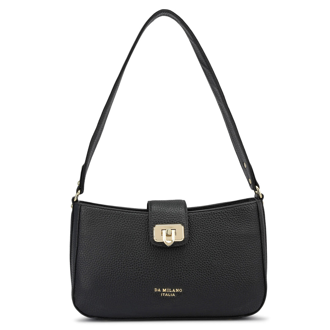 Small Wax Leather Baguette - Black