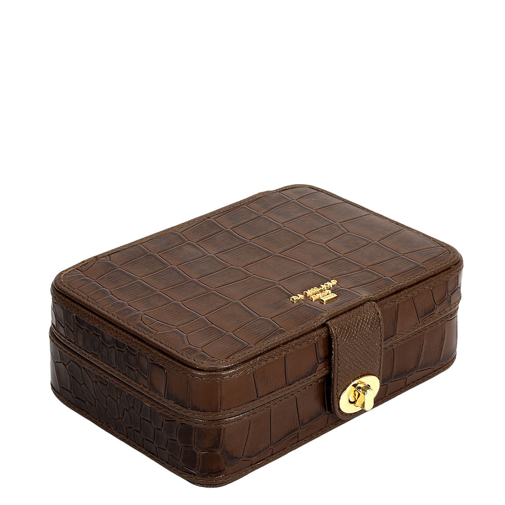 Croco Leather Jewellery Case - Walnut