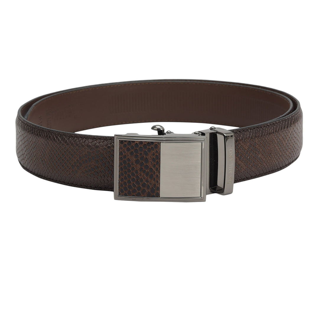 Formal Saffiano Leather Mens Belt - Brown & Black