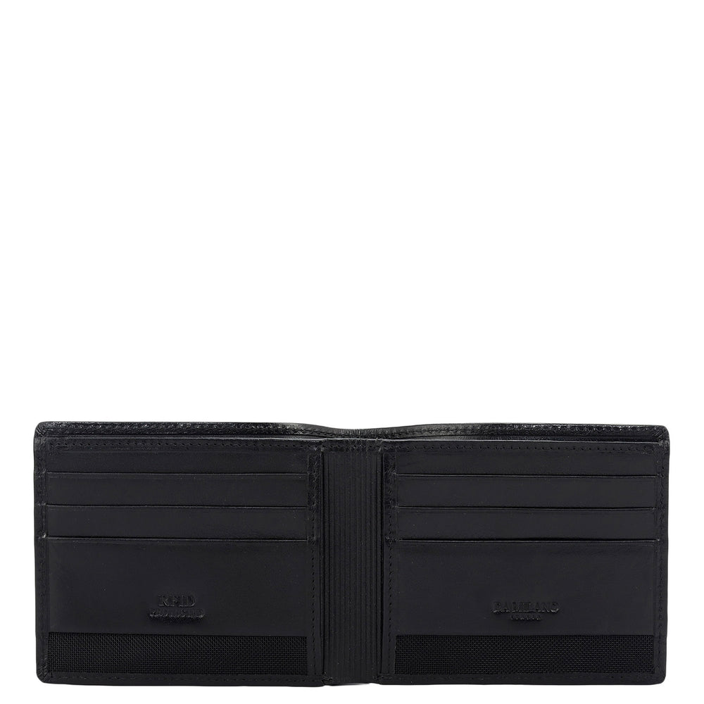 Crafted from textured leather, Da Milano men's bifold wallet offers a compact yet stylish design. Featuring easy-to-organize compartments, card slots, and pockets, it combines practicality with elegance. Subtle branding on the front enhances its refined appearance.