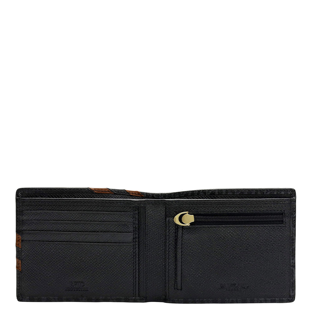 Crafted from textured leather, Da Milano men's bifold wallet offers a compact yet stylish design. Featuring easy-to-organize compartments, card slots, and pockets, it combines practicality with elegance. Subtle branding on the front enhances its refined appearance.
