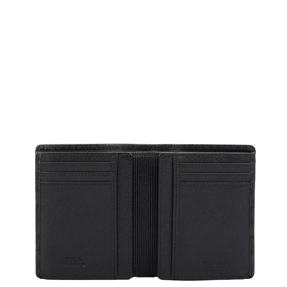 Crafted from textured leather, Da Milano men's bifold wallet offers a compact yet stylish design. Featuring easy-to-organize compartments, card slots, and pockets, it combines practicality with elegance. Subtle branding on the front enhances its refined appearance.