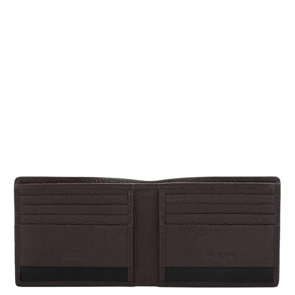 Crafted from textured leather, Da Milano men's bifold wallet offers a compact yet stylish design. Featuring easy-to-organize compartments, card slots, and pockets, it combines practicality with elegance. Subtle branding on the front enhances its refined appearance.
