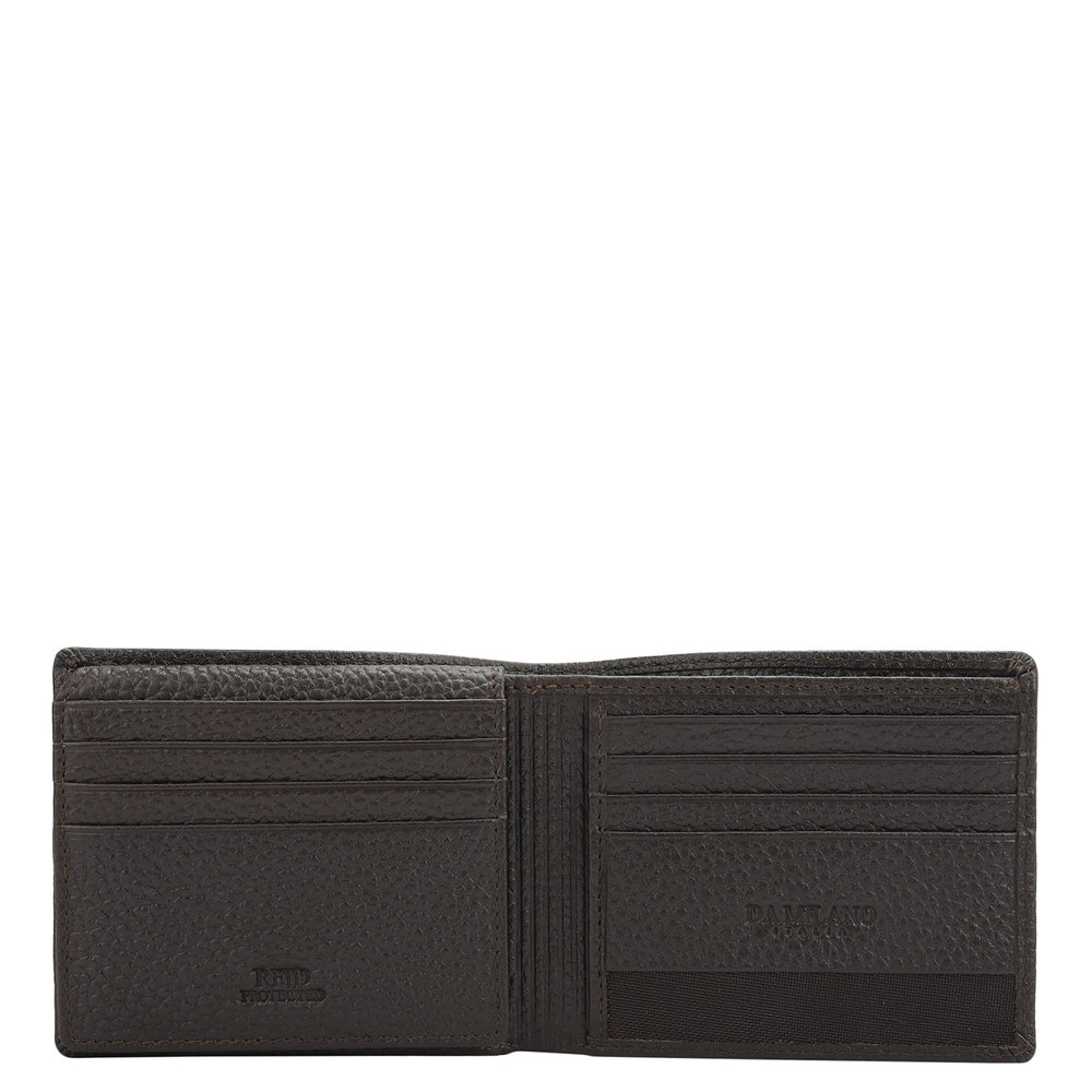 Crafted from textured leather, Da Milano men's bifold wallet (insert the sub category as per the product here) offers a compact yet stylish design. Featuring easy-to-organize compartments, card slots, and pockets, it combines practicality with elegance. Subtle branding on the front enhances its refined appearance.