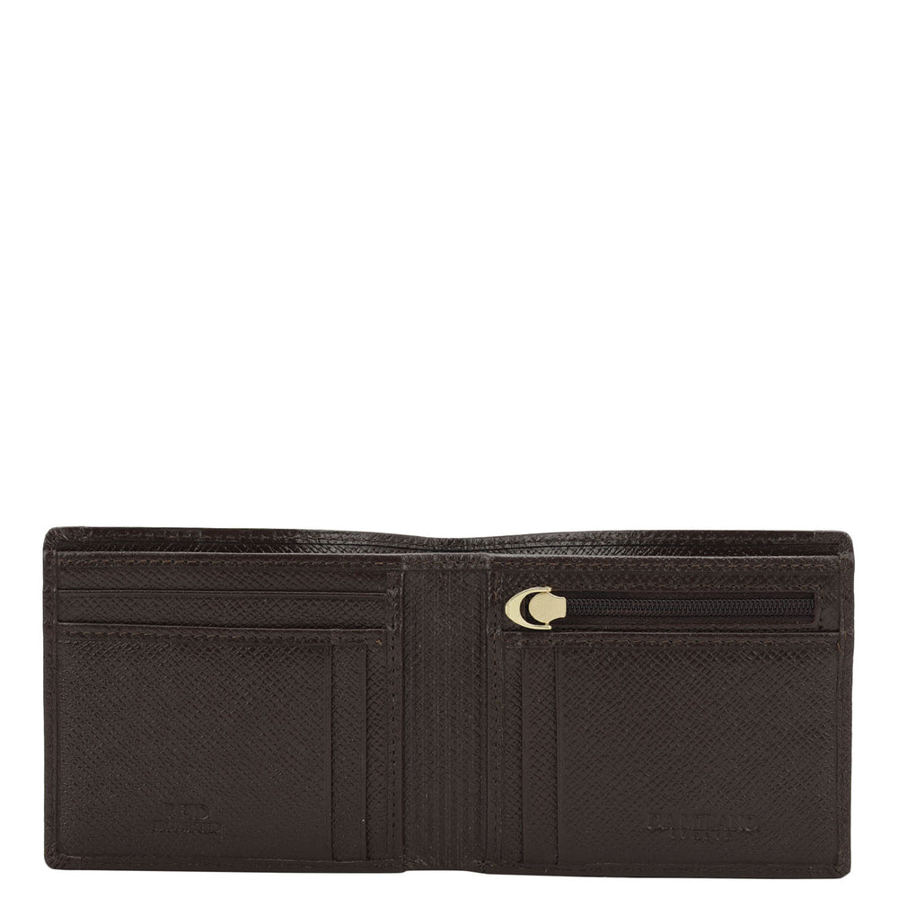 Crafted from textured leather, Da Milano men's bifold wallet offers a compact yet stylish design. Featuring easy-to-organize compartments, card slots, and pockets, it combines practicality with elegance. Subtle branding on the front enhances its refined appearance.