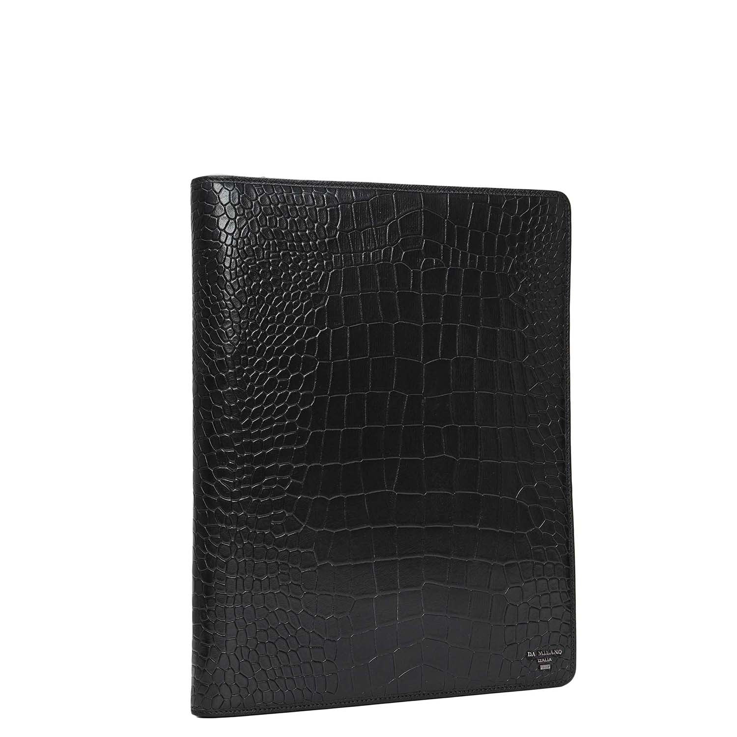 A fine leather folder with a smart exterior. Distinguished by its metal hardware and textured leather, the bag is carefully crafted to maximize utility while keeping it stylish.