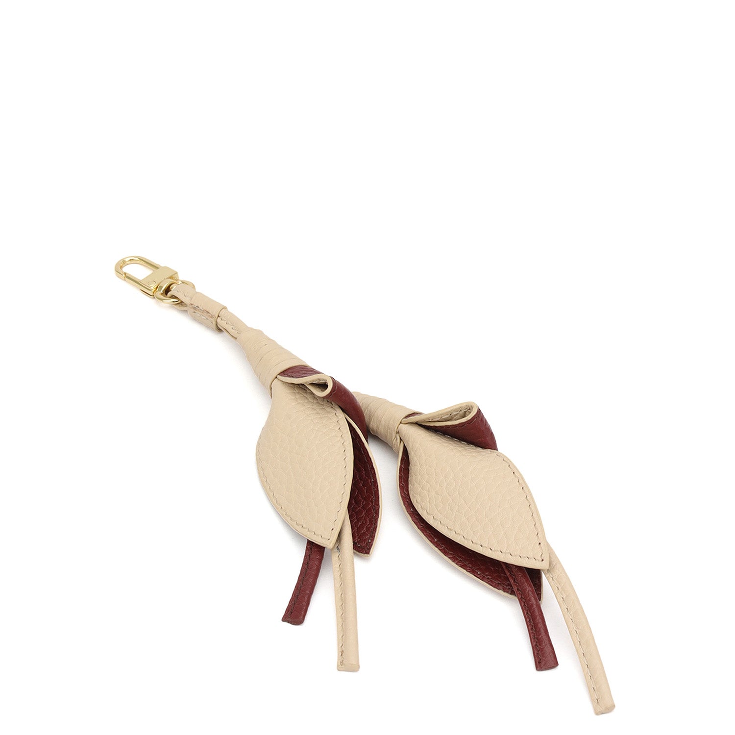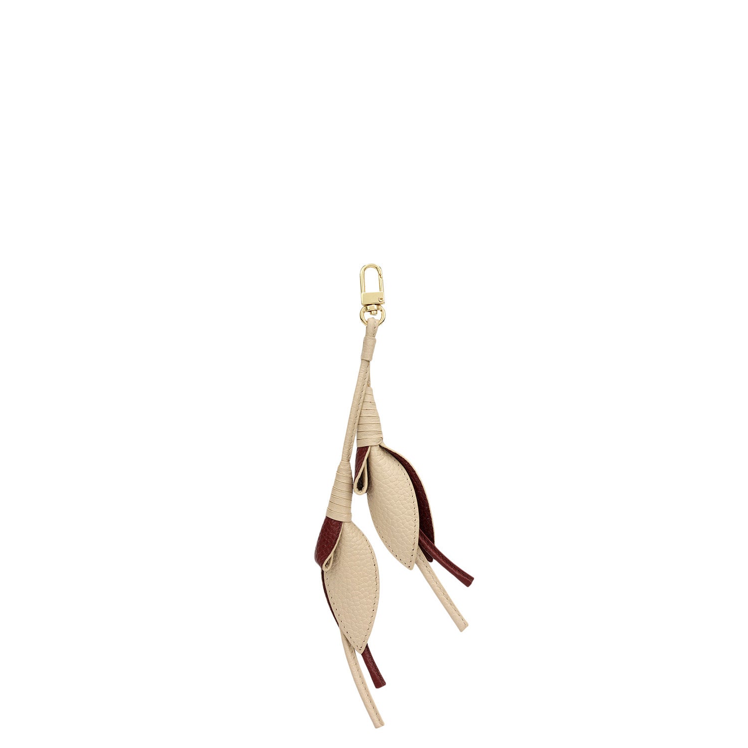 The Pebble Bag Hanging is crafted in a soft marshmallow base accented with rich cherry tones, creating a refined contrast that brings a subtle pop of colour to its design. Inspired by organic forms, its layered, leaf-like silhouette and textured finish add a distinctive yet elegant touch to everyday accessories. Finished with a polished clasp, it attaches effortlessly to bags for added style and functionality. The compact form offers space for small essentials like keys or coins, making it a practical and elevated addition to your