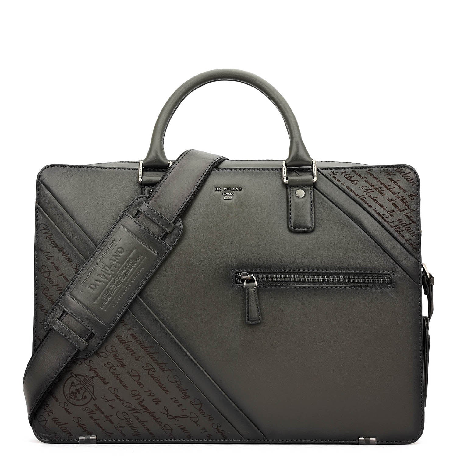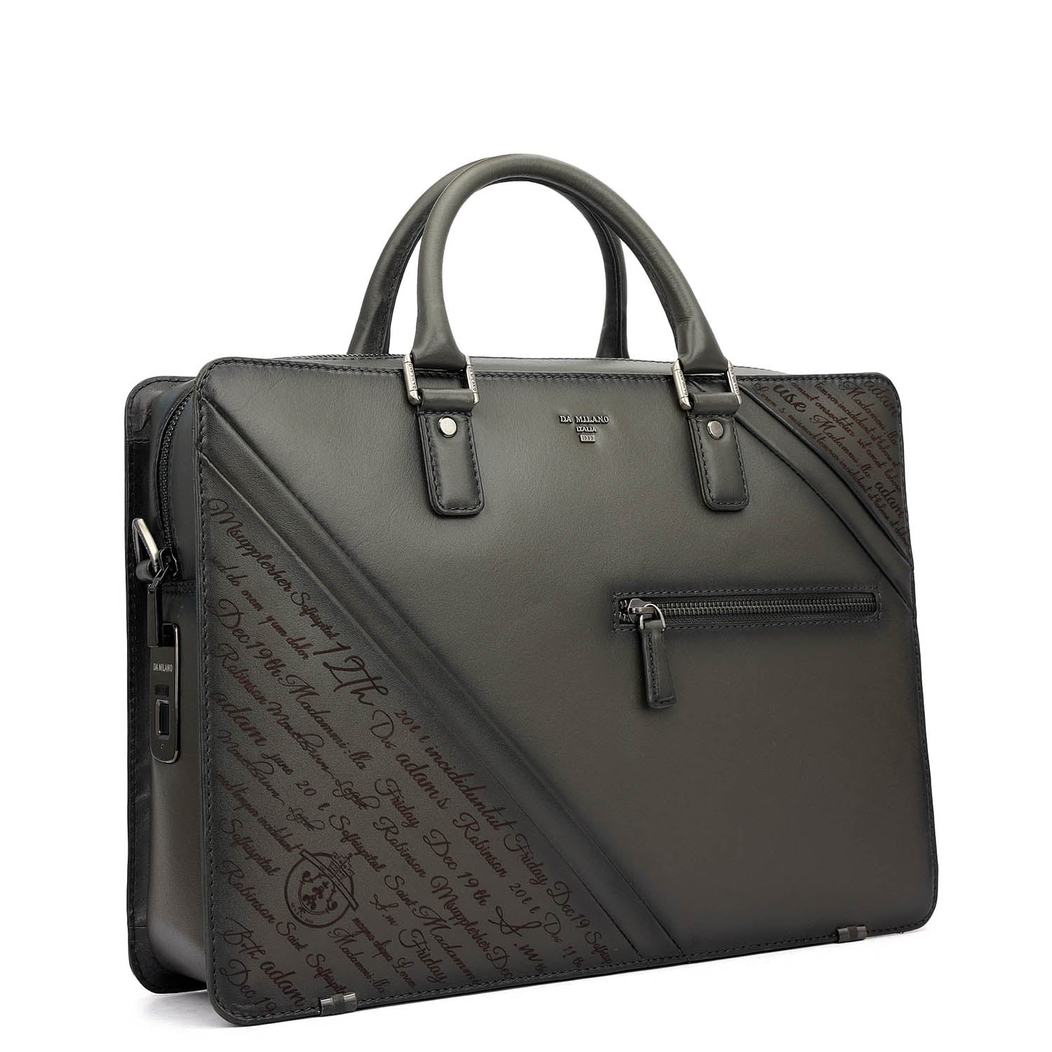 The Signato Laptop Bag is crafted in a refined grey tone, defined by its structured silhouette and contemporary detailing that brings a modern, tech-forward edge to everyday work essentials. Designed for secure and efficient organisation, it blends professional styling with smart functionality. Secured with a combination of zipper and biometric lock closure, the interior features a main compartment along with a dedicated laptop compartment that fits up to a 14-inch device. It is complemented by two open pockets, a zip pocket, four card slots, and two pen holders for streamlined organisation. The exterior includes a zip pocket for quick-access essentials, along with a built-in USB Type-C cable and a luggage sleeve, making it an ideal companion for work, travel, and on-the-go convenience.