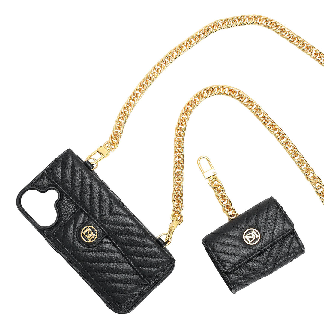 Quilting Leather Mobile Case (Iphone 16 Pro)- Black