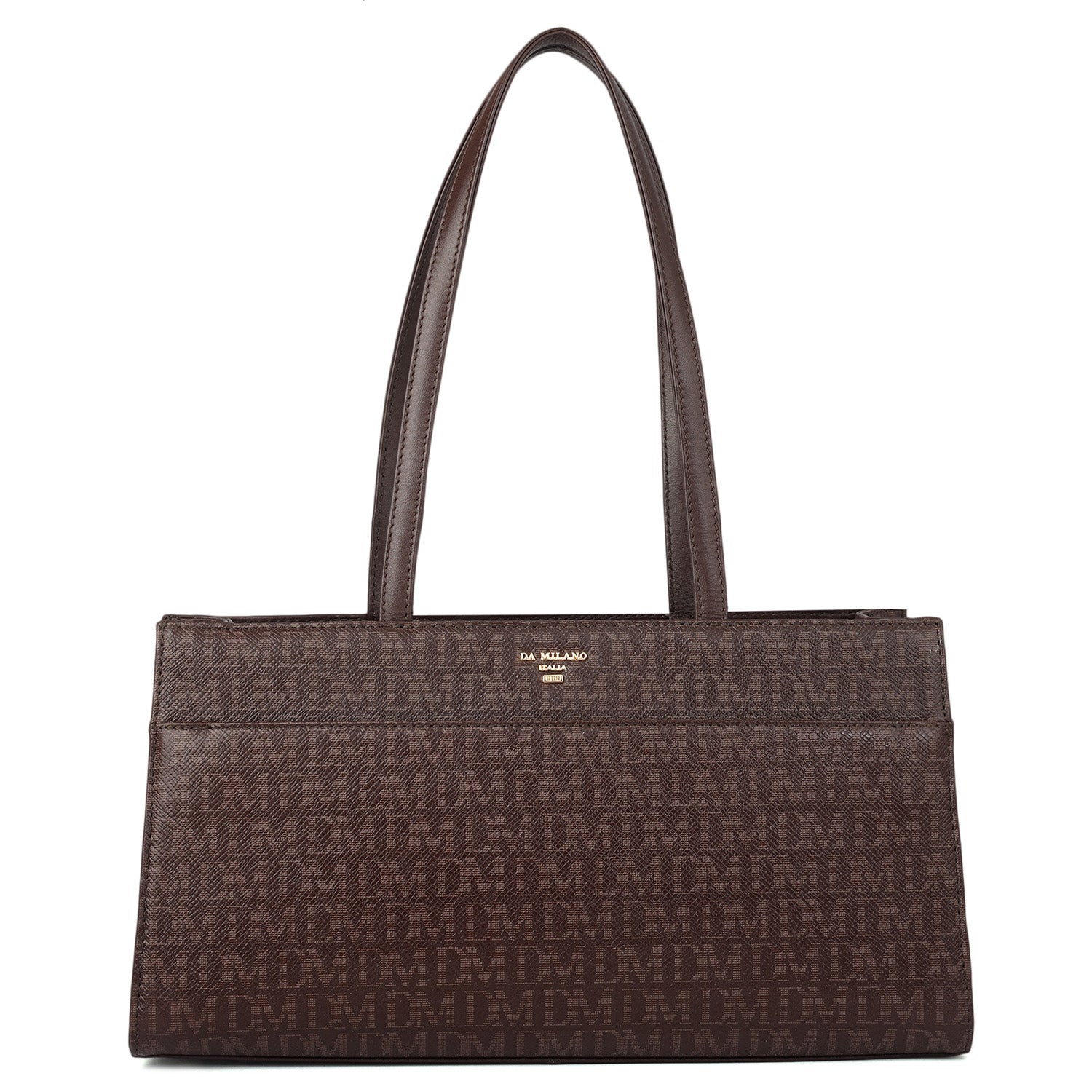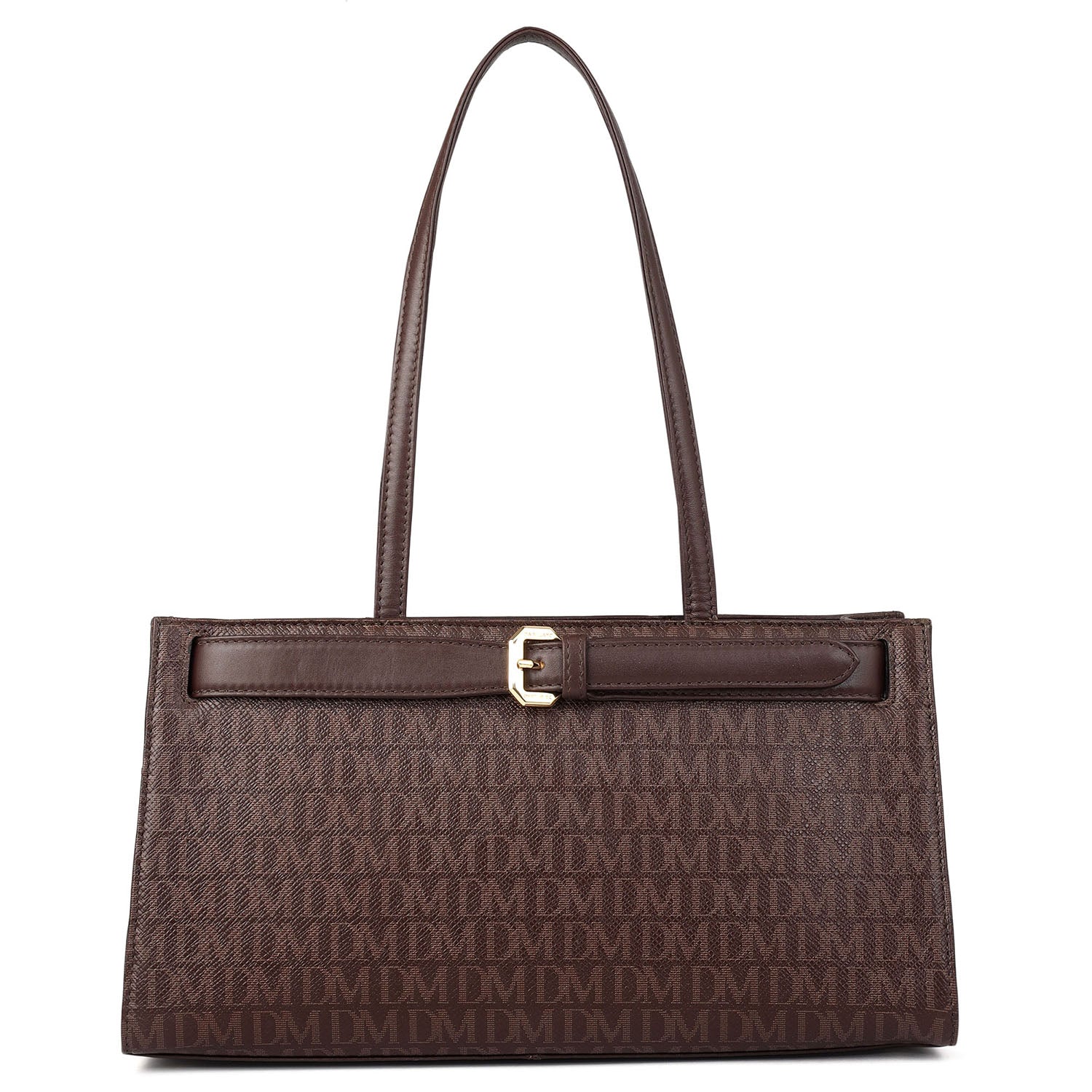 Streamlined and chic, the Siena Elongated Shoulder Bag reimagines the classic shoulder silhouette with an extended profile that feels fresh and on-trend. Crafted in DM monogram leather paired with smooth plain leather, it features a bold beltand-buckle detail that runs seamlessly through the single gusset to the back. Designed with one spacious compartment, this versatile silhouette blends modern style with everyday function— making it a new essential for the season.