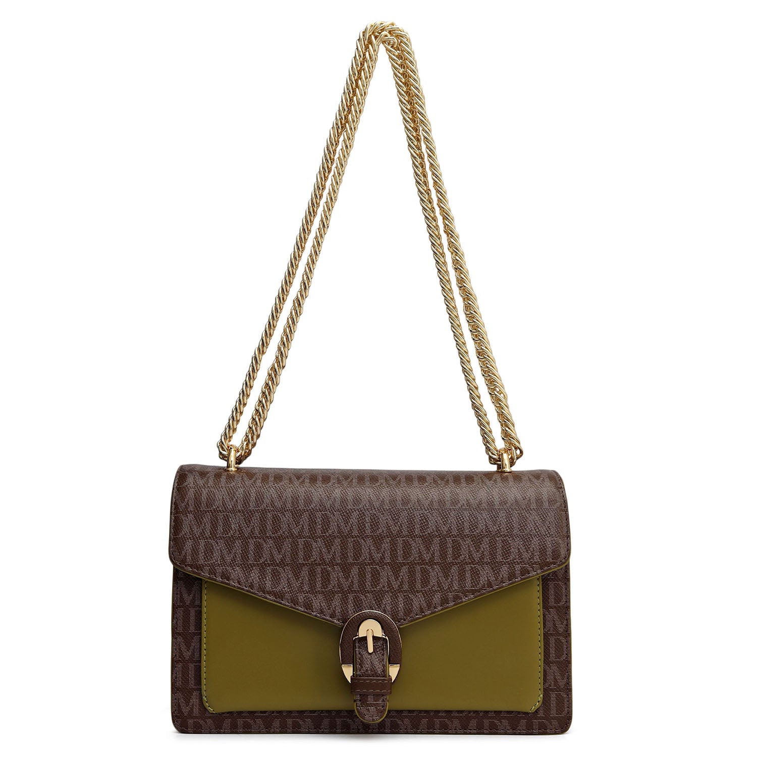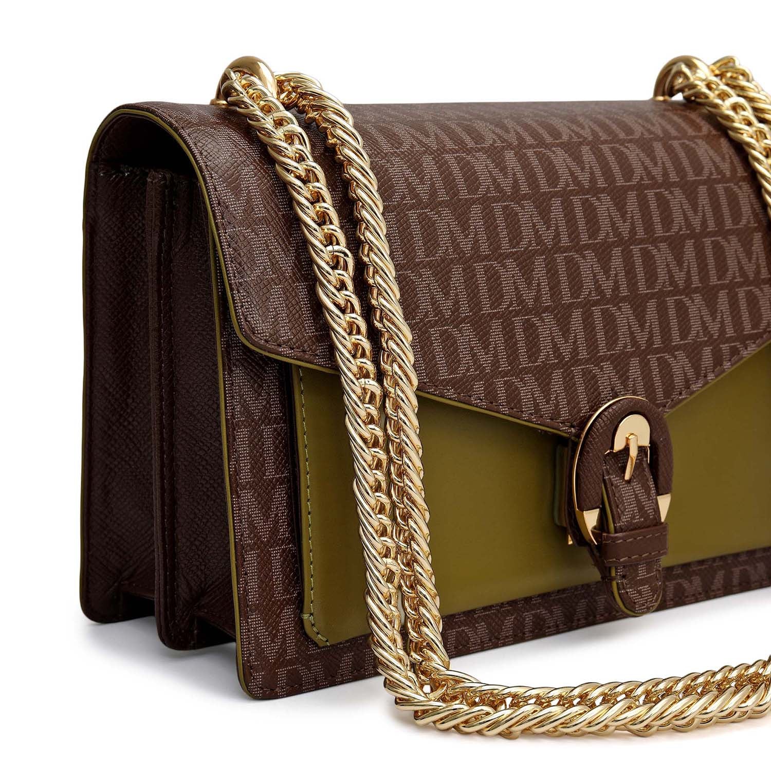 Small Monogram Plain Leather Shoulder Bag - Walnut & Lime