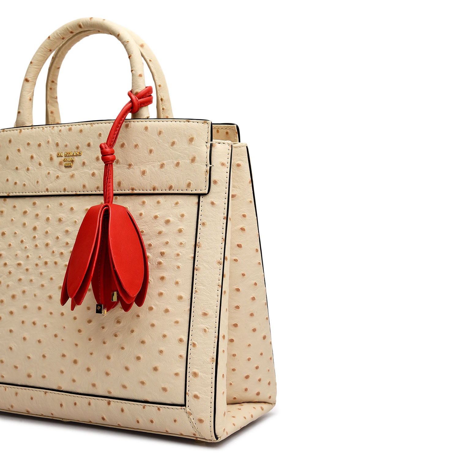 Small Ostrich Leather Book Tote - Vanilla