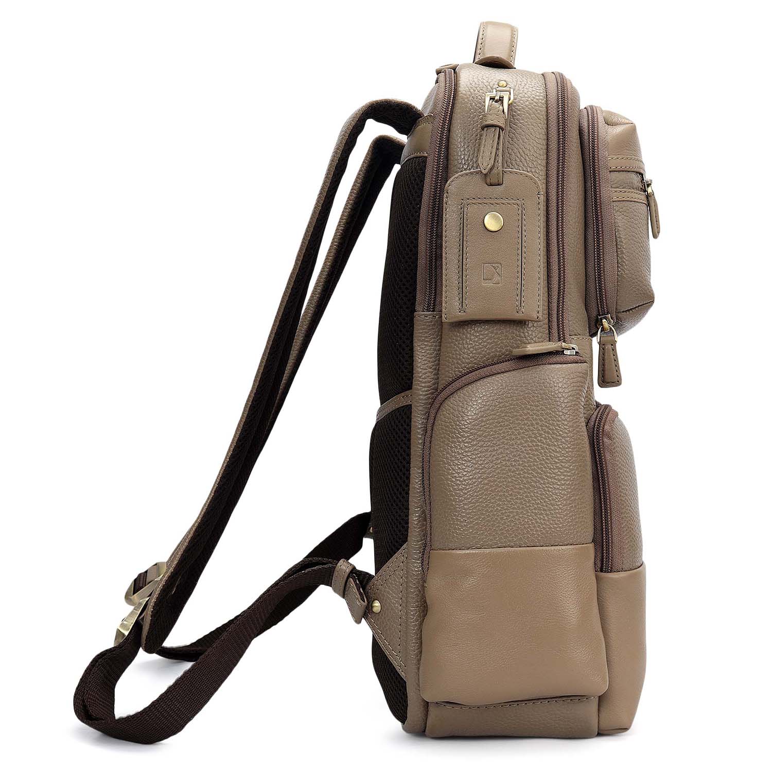 Exterior Details: Zip Pocket- 4, Side Zip Pocket- 2, Secret Zip Pocket- 1, Open Mobile Pocket- 1, Luggage Sleeve, Luggage Tag