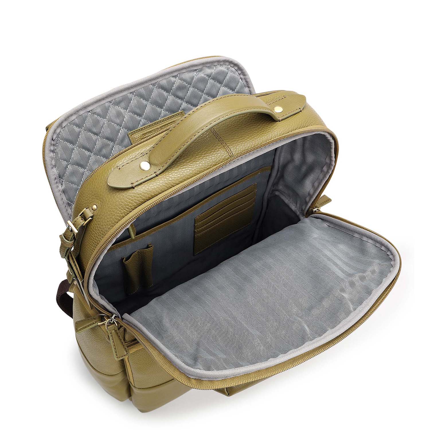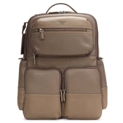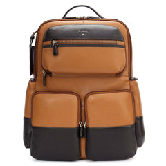 Leather backpack with a play of texture. Featuring multipurpose pockets on the exterior as well as interior to enhance utility. This functional bag is the perfect fusion of Italian craftsmanship and contemporary style. This bag can fit a standard laptop up to 15 inches.