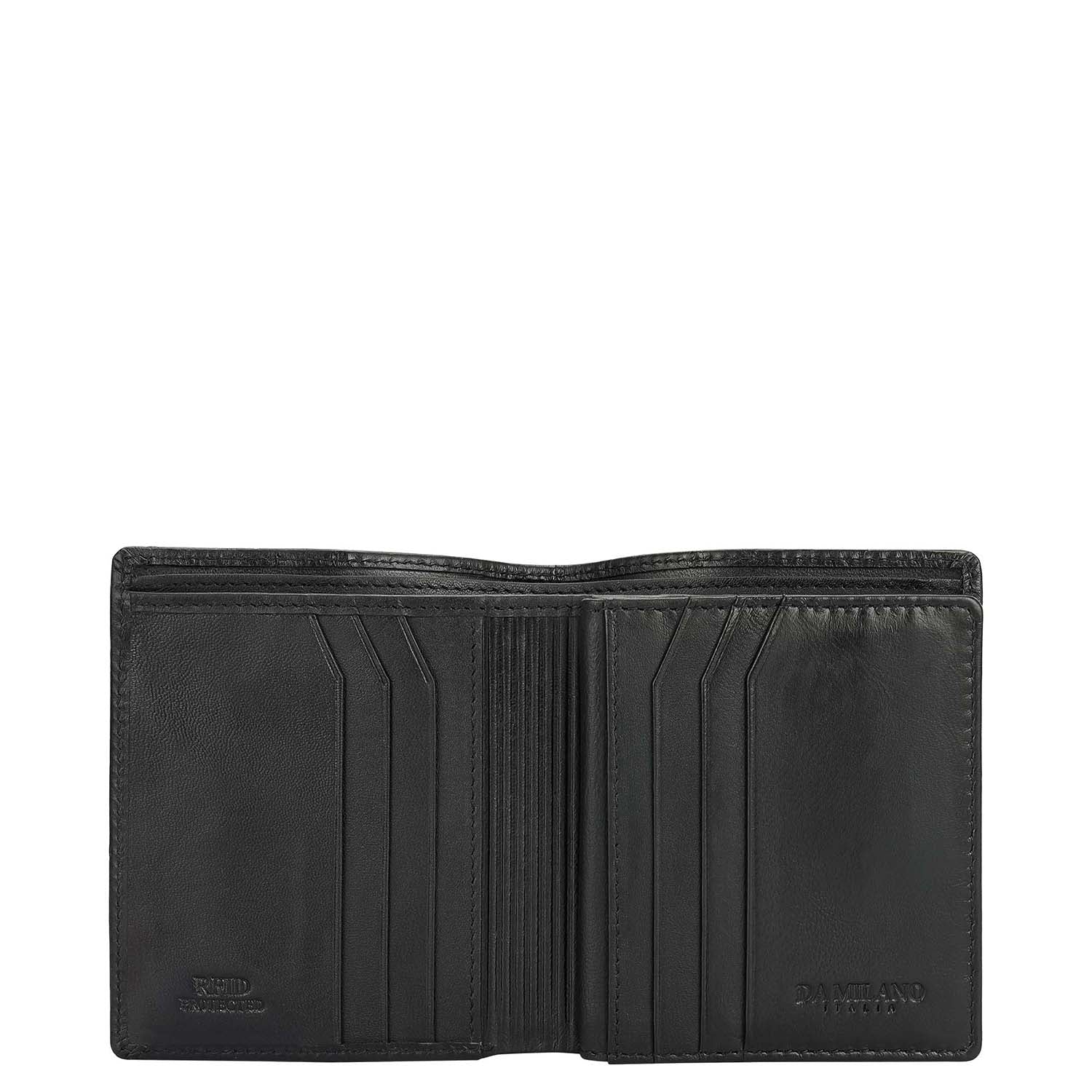 Crafted from textured leather, Da Milano men's bifold wallet offers a compact yet stylish design. Featuring easy-to-organize compartments, card slots, and pockets, it combines practicality with elegance. Subtle branding on the front enhances its refined appearance.