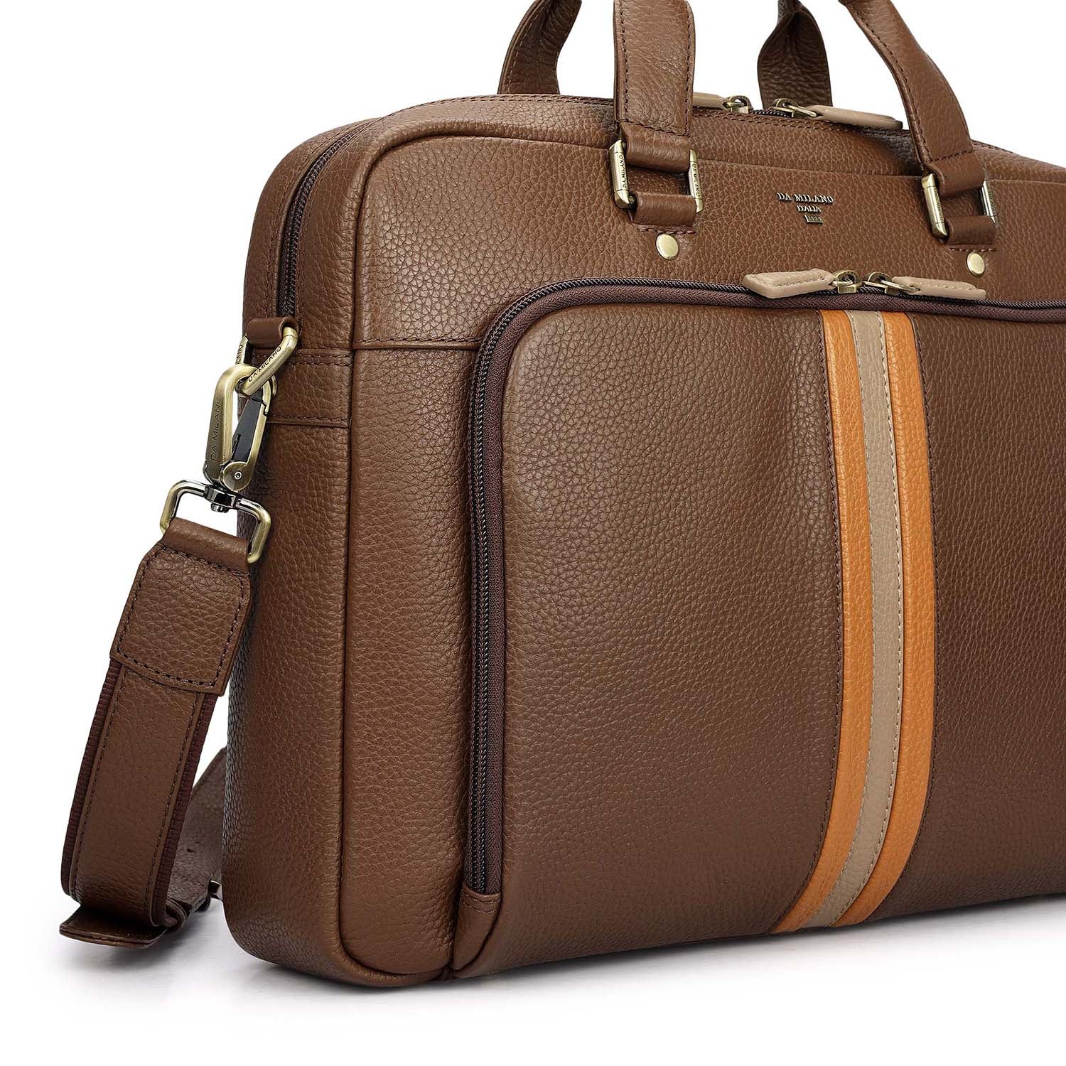 The Classic Laptop Bag is designed in a structured silhouette with a warm mocha tone and sleek contrast stripe detailing for a sharp, modern finish. Built for work days and travel routines, it comfortably fits up to a 15-inch laptop while keeping your essentials organised and within easy reach.