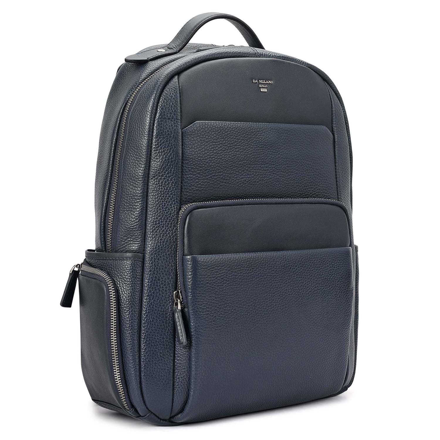 Leather backpack with a play of texture. Featuring multipurpose pockets on the exterior as well as interior to enhance utility. This functional bag is the perfect fusion of Italian craftsmanship and contemporary style. This bag can fit a standard laptop up to 14 inches.