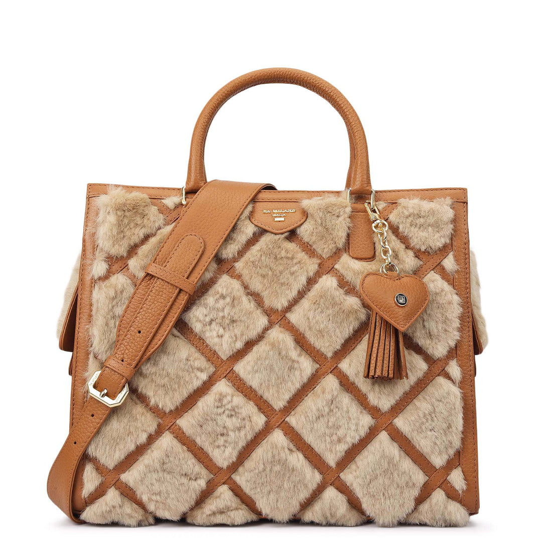 Fur Leather Bag Hanging - Beige & Brown