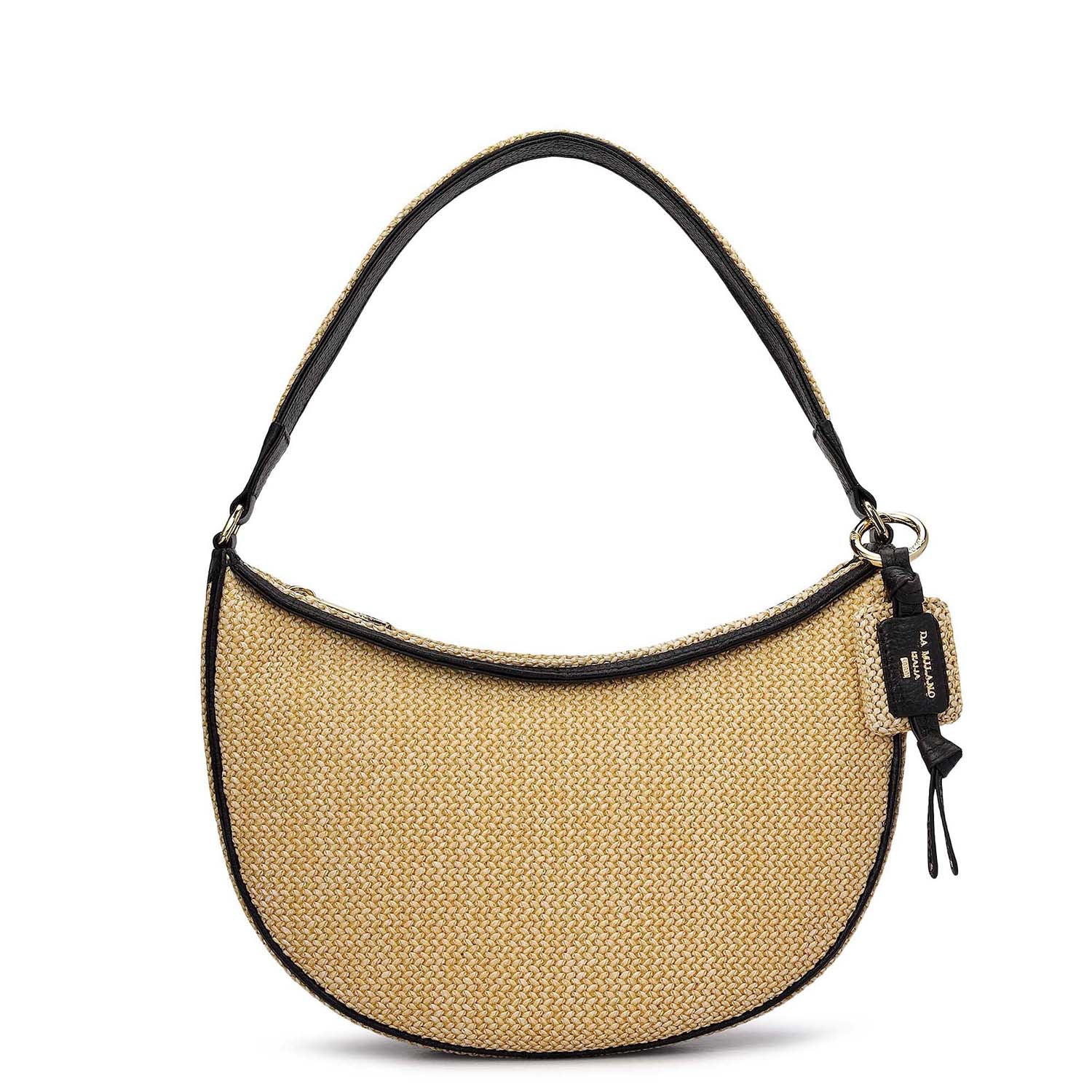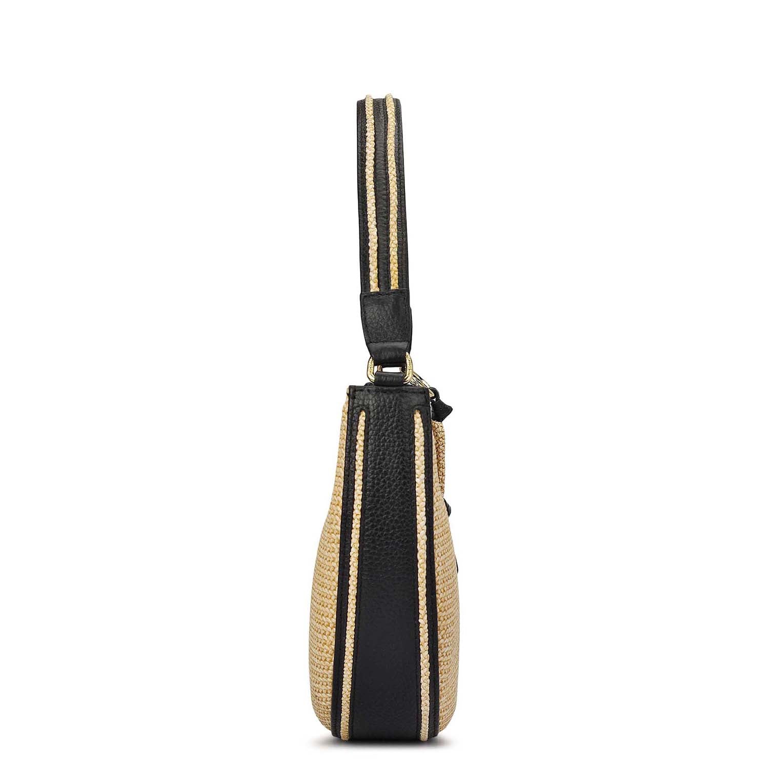 The Raffia Repose Hobo Bag is the definition of easy summer cool, crafted in textured beige raffia with black trims for a clean, polished finish. Designed in a curved hobo silhouette, it sits comfortably on the shoulder and adds a statement to warm-weather looks.