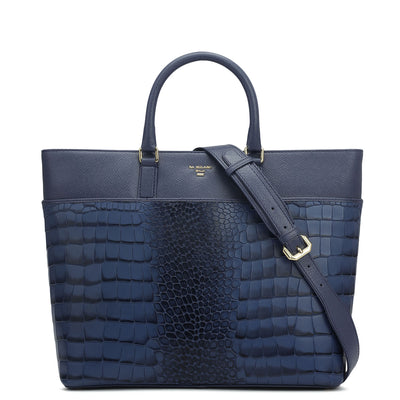Small Croco Franzy Leather Satchel - Teal