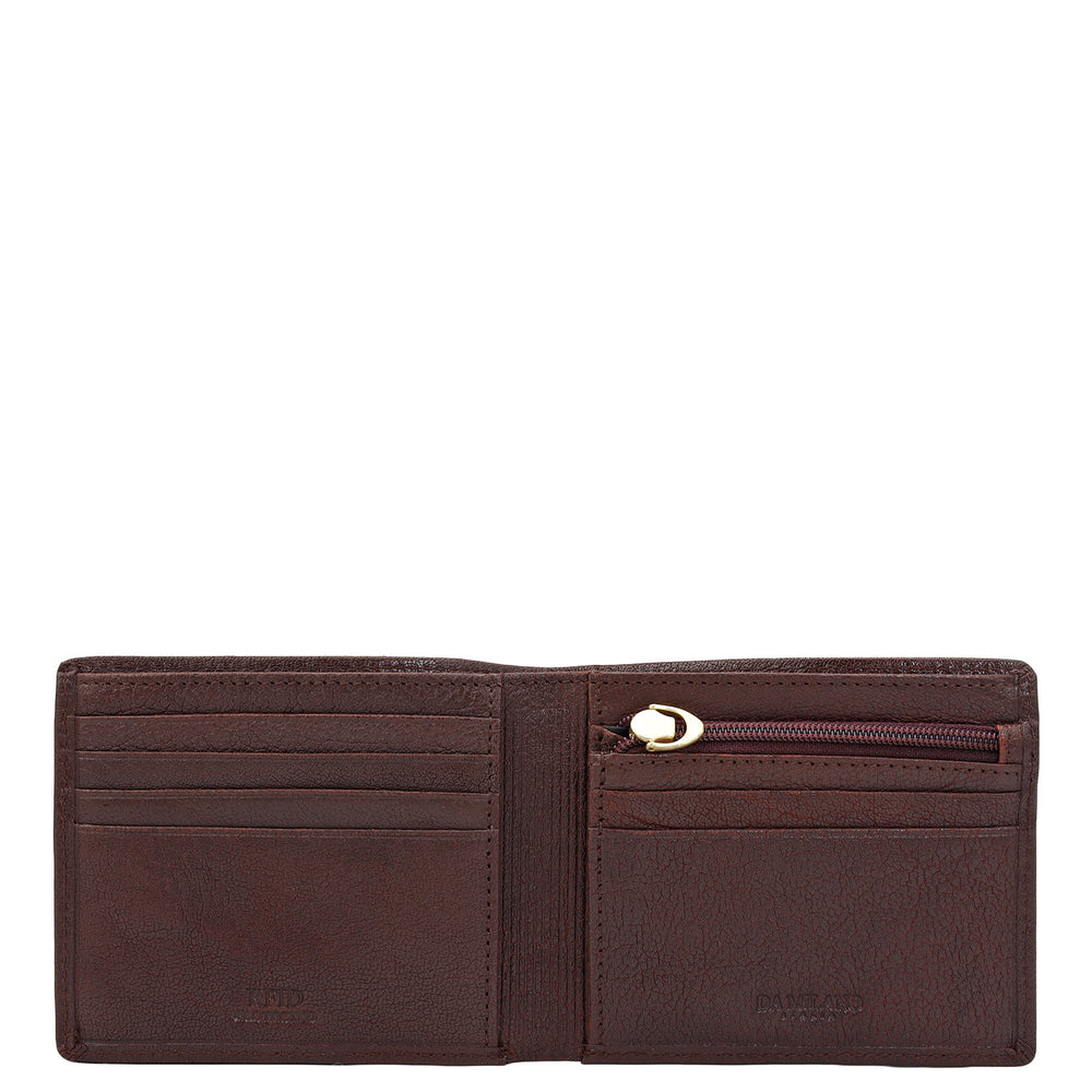 Crafted from textured leather, Da Milano men's bifold wallet offers a compact yet stylish design. Featuring easy-to-organize compartments, card slots, and pockets, it combines practicality with elegance. Subtle branding on the front enhances its refined appearance.