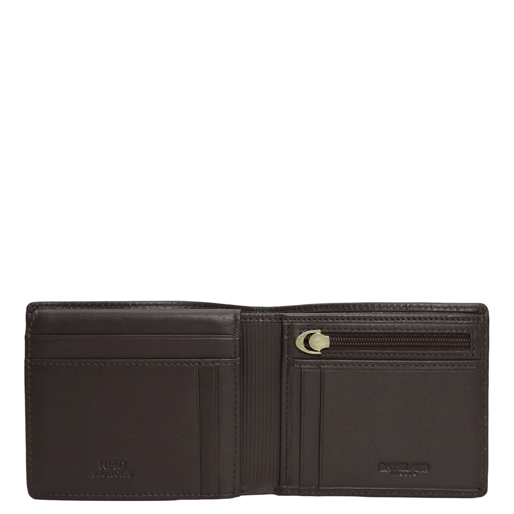 Crafted from textured leather, Da Milano men's bifold wallet offers a compact yet stylish design. Featuring easy-to-organize compartments, card slots, and pockets, it combines practicality with elegance. Subtle branding on the front enhances its refined appearance.