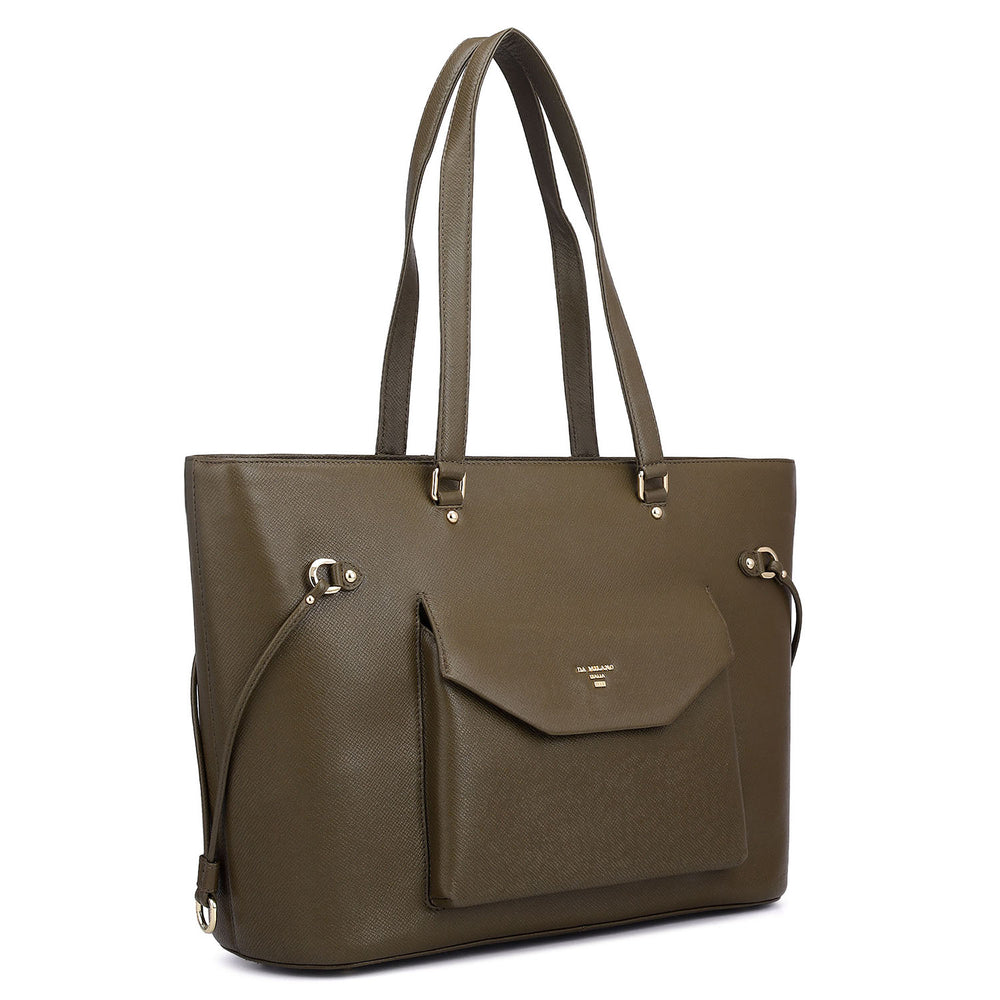With spacious interior and thoughtfully organized pockets, Da Milano's Leather Tote Bags effortlessly accommodates your everyday essentials with ease. Notebooks, keys, smartphones and other daily essentials, everything finds its place within this meticulously designed accessory. The supple leather exterior lends a luxurious touch, while the sturdy handles ensure comfortable carrying throughout your day. Comes with a detachable shoulder strap, and the bag can fit a standard laptop up to 14 inches.