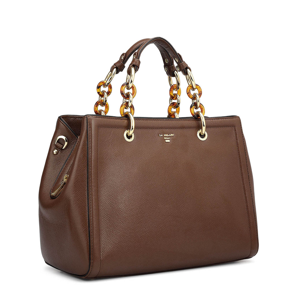 This elegant leather satchel handbag combines timeless style with practical functionality. Crafted from premium full-grain leather, it features a spacious interior with multiple compartments, and a detachable shoulder strap for versatile carrying options. Perfect for both professional and casual situations.