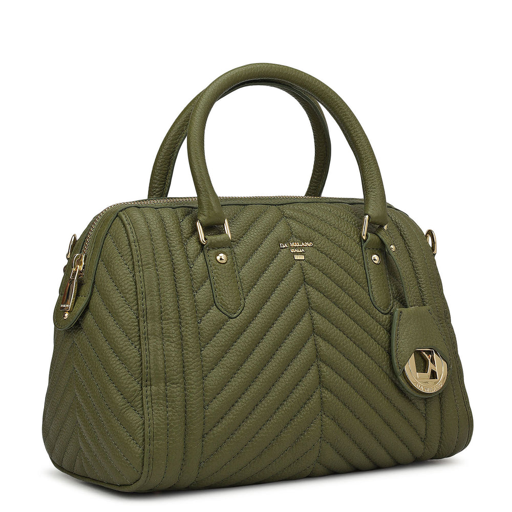 Medium Quilting Leather Satchel - Fern
