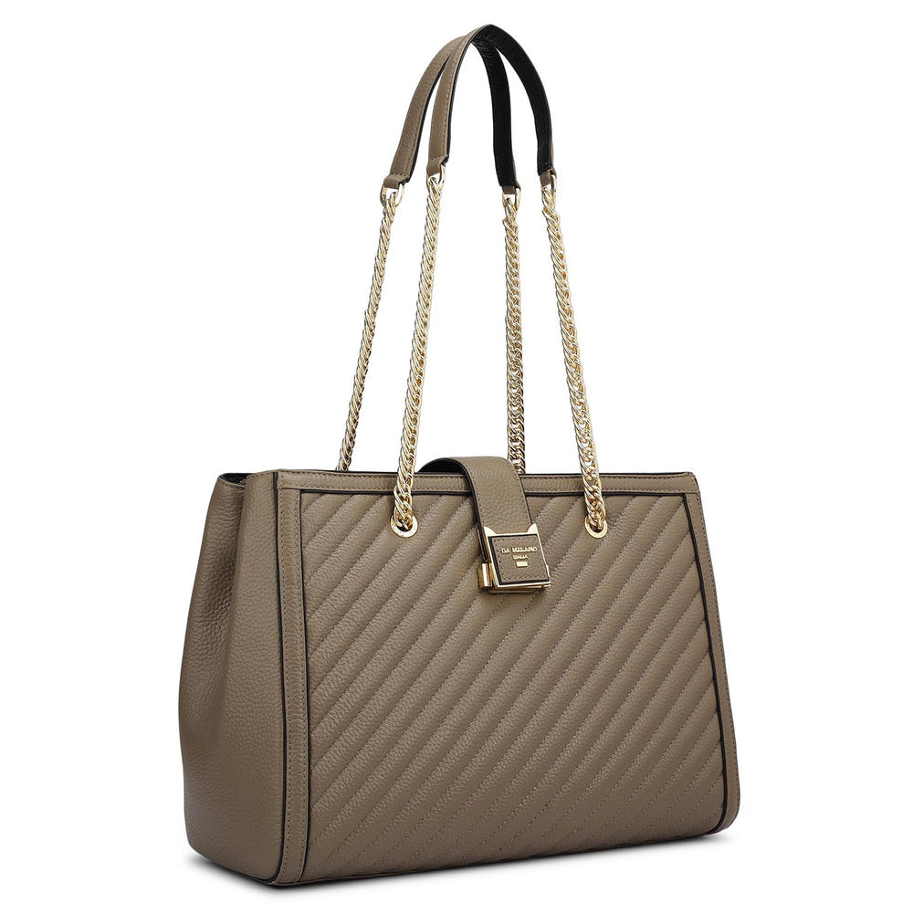 Medium Wax Stripe Leather Shoulder Bag - Greyish Taupe