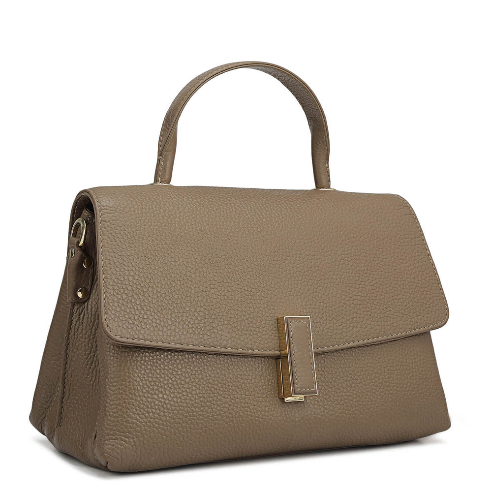 Small Wax Leather Satchel - Greyish Taupe