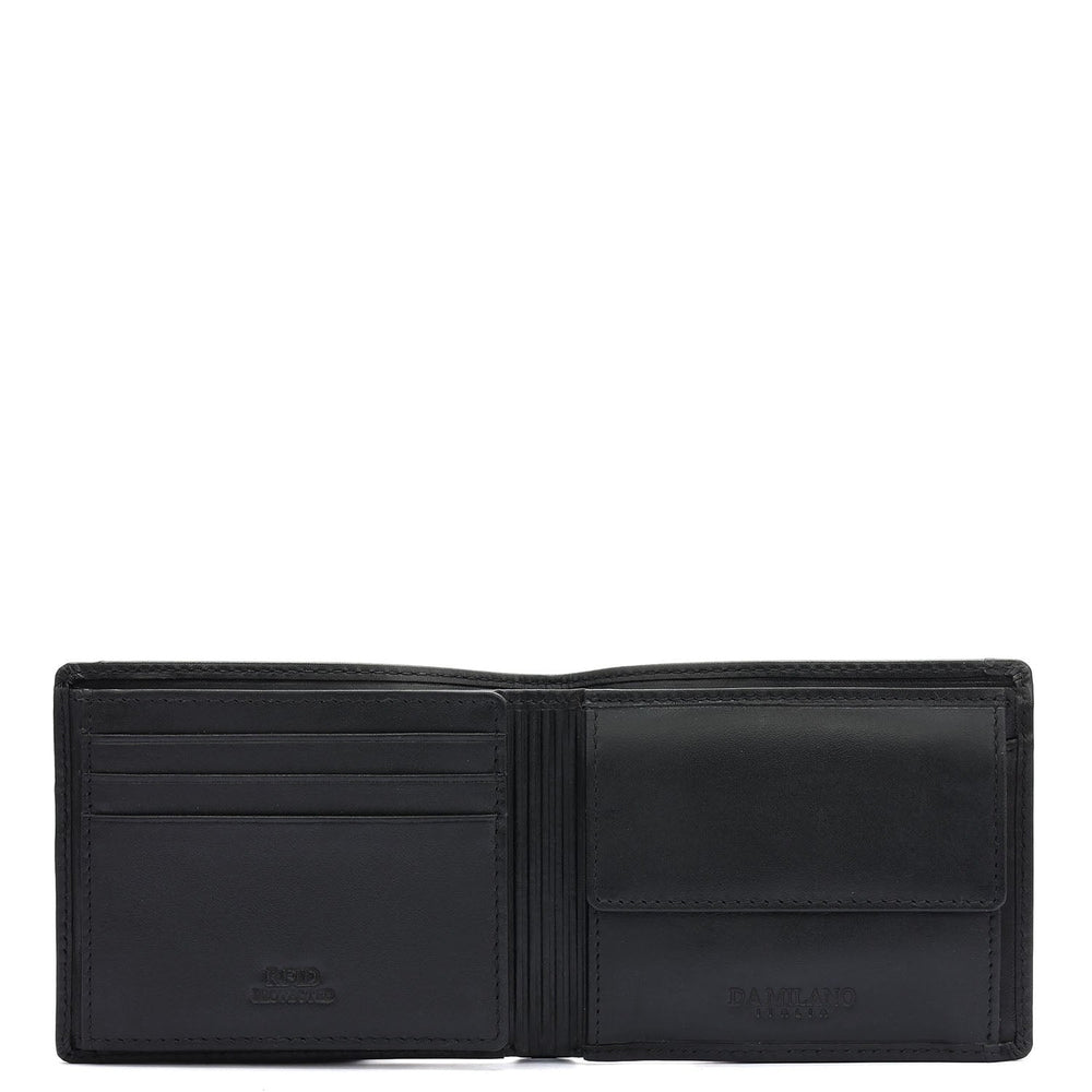 Crafted from textured leather, Da Milano men's bifold wallet offers a compact yet stylish design. Featuring easy-to-organize compartments, card slots, and pockets, it combines practicality with elegance. Subtle branding on the front enhances its refined appearance.
